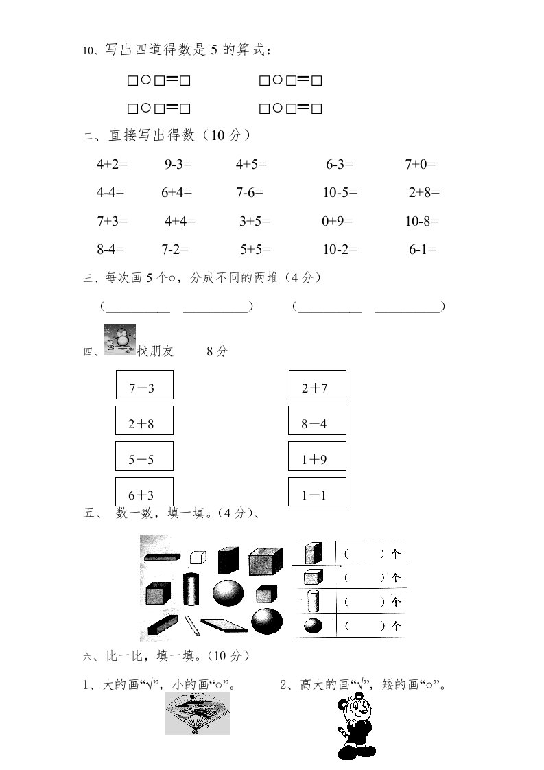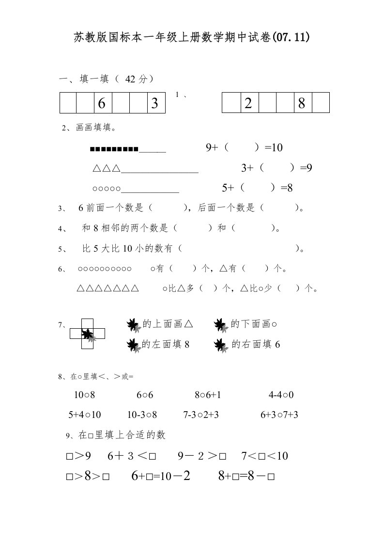 一年级数学上册期中试题(3)(苏教版)_共4页