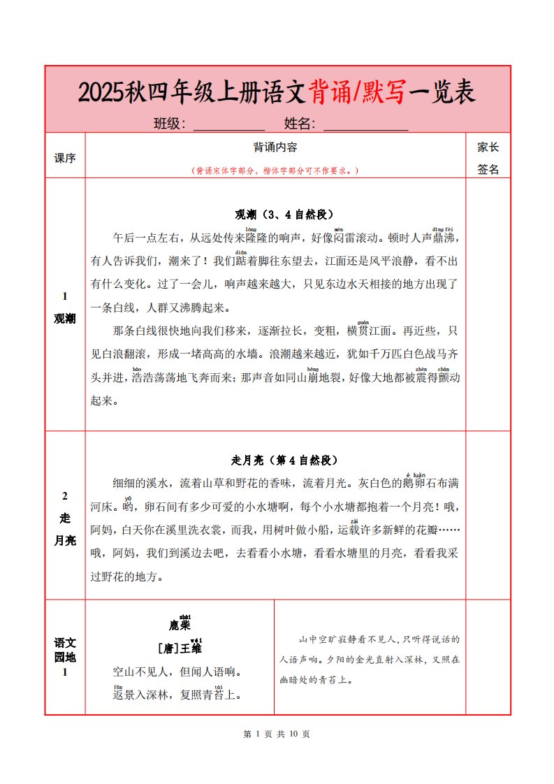 当前位置: 首页小学资源小学四年级正文 25秋四上语文必背内容+默写表(10页)_共10页 小学四年级 1 周前 0 0 5 以上为部分内容预览,如需源文档请登录您的会员账号进行下载! 声明:本站所有文章,如无特殊说明或标注,均为本站原创发布。任何个人或组织,在未征得本站同意时,禁止复制、盗用、采集、发布本站内容到任何网站、书籍等各类媒体平台。如若本站内容侵犯了原著者的合法权益,可联系我们进行处理。 尚学资源永久会员 打赏 收藏 海报 链接