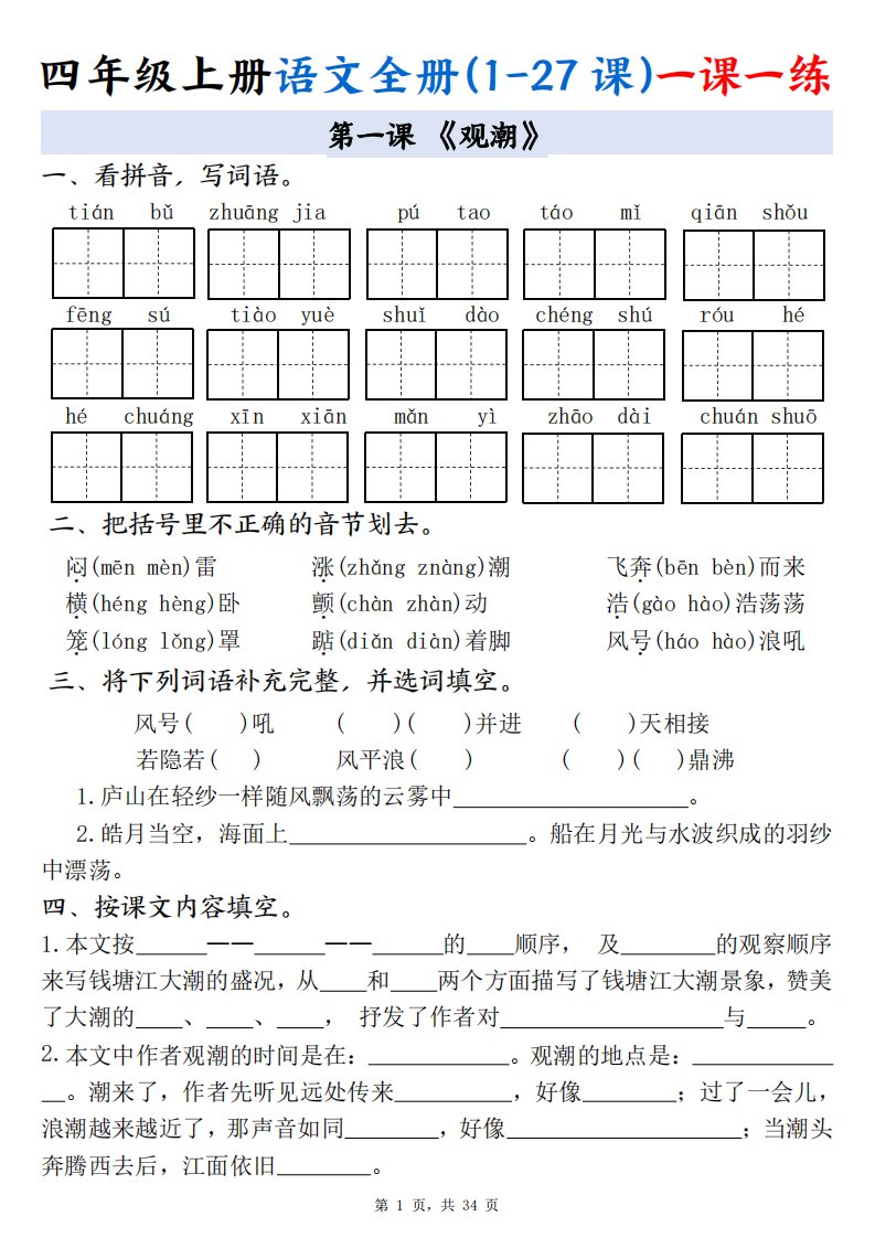 当前位置: 首页小学资源小学四年级正文 四上语文全册(1-27课)一课一练34页_共34页 小学四年级 7 天前 0 0 15 以上为部分内容预览,如需源文档请登录您的会员账号进行下载! 声明:本站所有文章,如无特殊说明或标注,均为本站原创发布。任何个人或组织,在未征得本站同意时,禁止复制、盗用、采集、发布本站内容到任何网站、书籍等各类媒体平台。如若本站内容侵犯了原著者的合法权益,可联系我们进行处理。 尚学资源永久会员 打赏 收藏 海报 链接