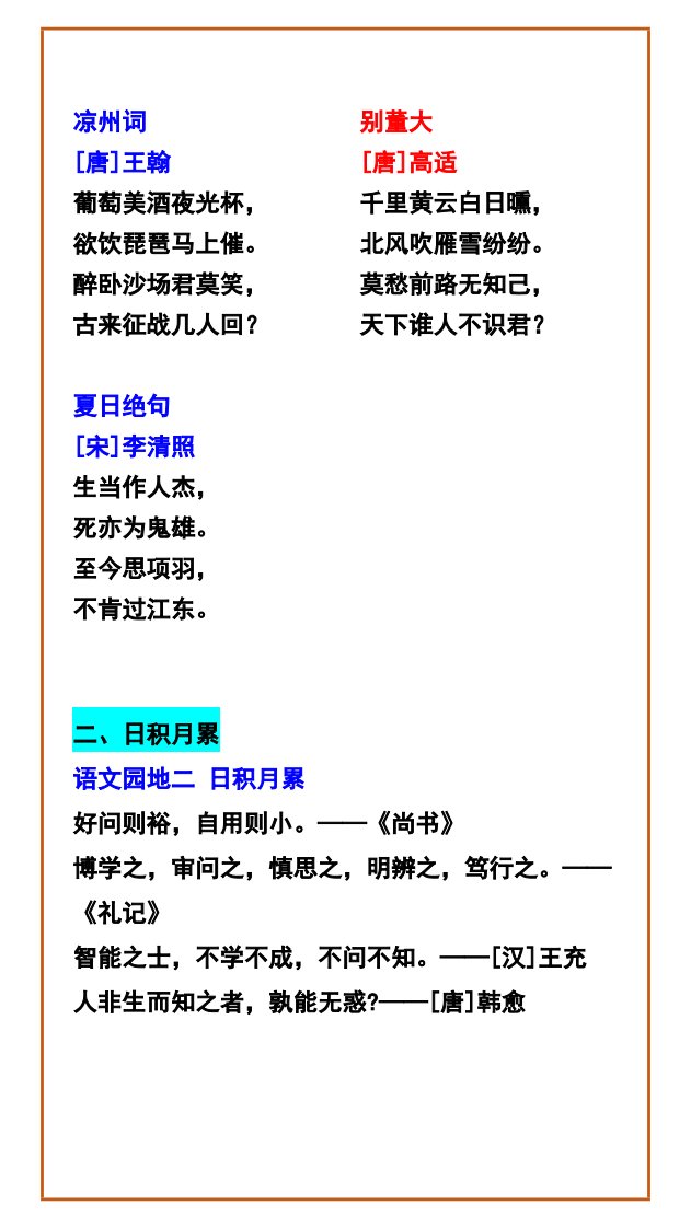 当前位置: 首页小学资源小学四年级正文 【2025秋新版】四年级语文上册古诗+日积月累汇总,收藏牢记!_共4页 小学四年级 1 周前 0 0 5 以上为部分内容预览,如需源文档请登录您的会员账号进行下载! 声明:本站所有文章,如无特殊说明或标注,均为本站原创发布。任何个人或组织,在未征得本站同意时,禁止复制、盗用、采集、发布本站内容到任何网站、书籍等各类媒体平台。如若本站内容侵犯了原著者的合法权益,可联系我们进行处理。 尚学资源永久会员 打赏 收藏 海报 链接