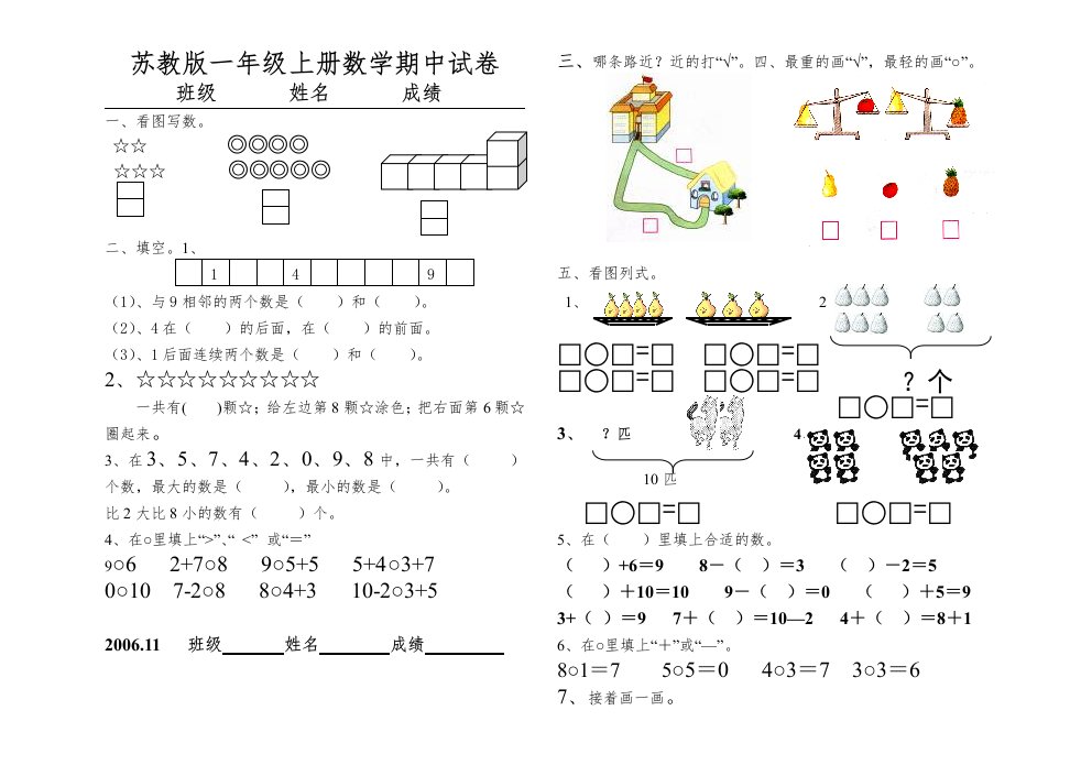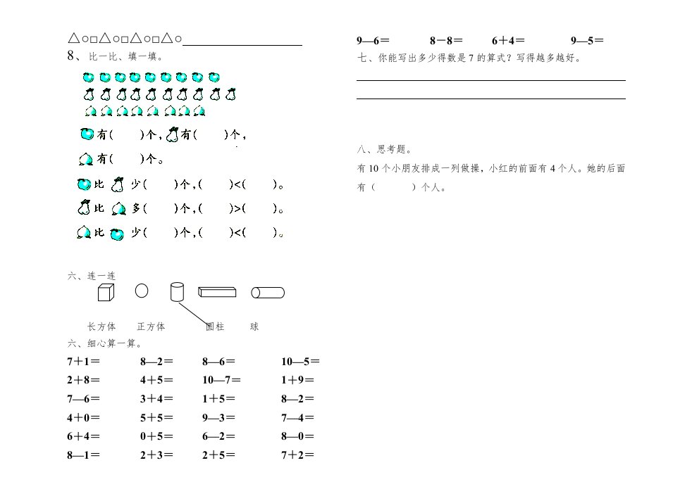 当前位置: 首页小学资源小学一年级正文 一年级数学上册期中试题(15)(苏教版)_共2页 小学一年级 2 周前 0 0 5 以上为部分内容预览,如需源文档请登录您的会员账号进行下载! 声明:本站所有文章,如无特殊说明或标注,均为本站原创发布。任何个人或组织,在未征得本站同意时,禁止复制、盗用、采集、发布本站内容到任何网站、书籍等各类媒体平台。如若本站内容侵犯了原著者的合法权益,可联系我们进行处理。 尚学资源永久会员 打赏 收藏 海报 链接