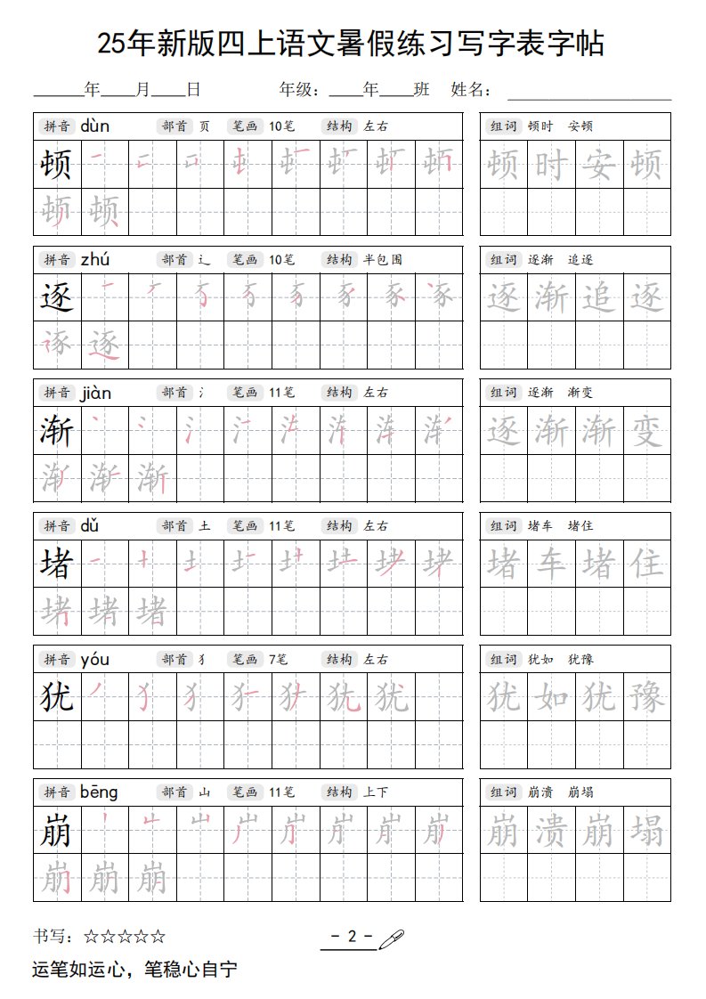 当前位置: 首页小学资源小学四年级正文 25年新版四上语文暑假练习写字表字帖42页_共42页 小学四年级 1 周前 0 0 15 以上为部分内容预览,如需源文档请登录您的会员账号进行下载! 声明:本站所有文章,如无特殊说明或标注,均为本站原创发布。任何个人或组织,在未征得本站同意时,禁止复制、盗用、采集、发布本站内容到任何网站、书籍等各类媒体平台。如若本站内容侵犯了原著者的合法权益,可联系我们进行处理。 尚学资源永久会员 打赏 收藏 海报 链接