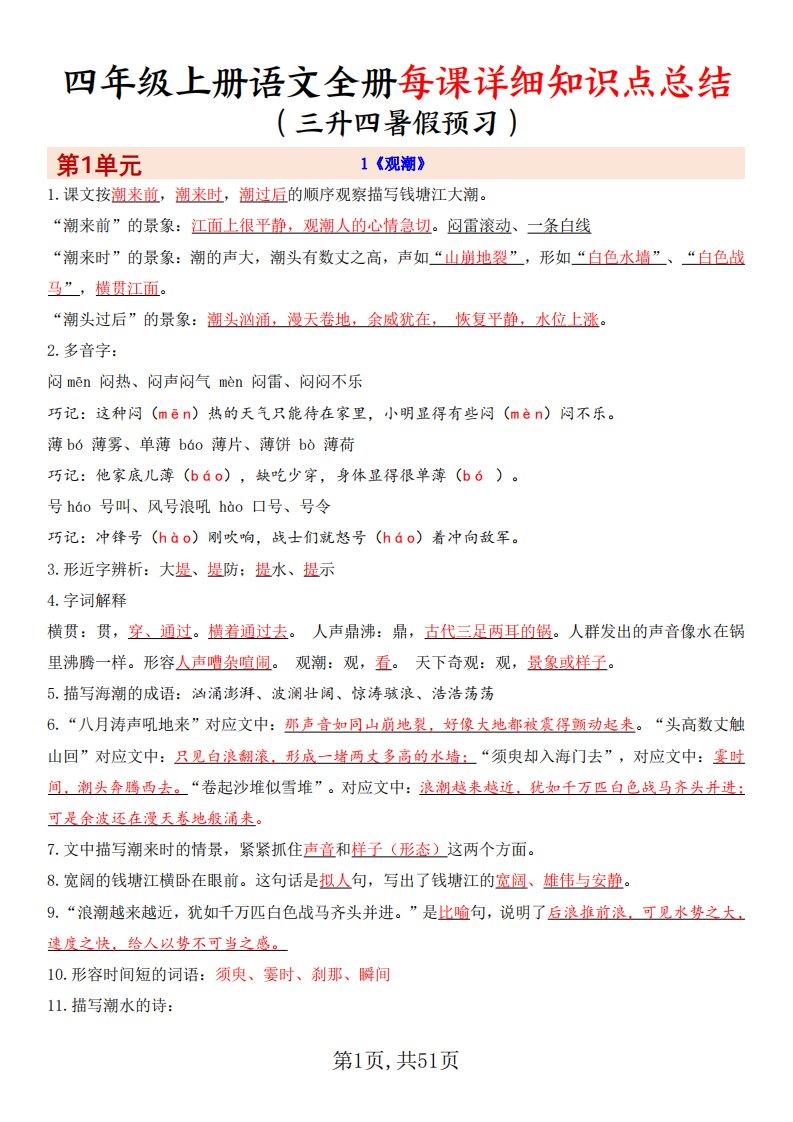 当前位置: 首页小学资源小学四年级正文 暑假预习四上语文全册每课详细知识点总结(51页)_共51页 小学四年级 1 周前 0 0 15 以上为部分内容预览,如需源文档请登录您的会员账号进行下载! 声明:本站所有文章,如无特殊说明或标注,均为本站原创发布。任何个人或组织,在未征得本站同意时,禁止复制、盗用、采集、发布本站内容到任何网站、书籍等各类媒体平台。如若本站内容侵犯了原著者的合法权益,可联系我们进行处理。 尚学资源永久会员 打赏 收藏 海报 链接