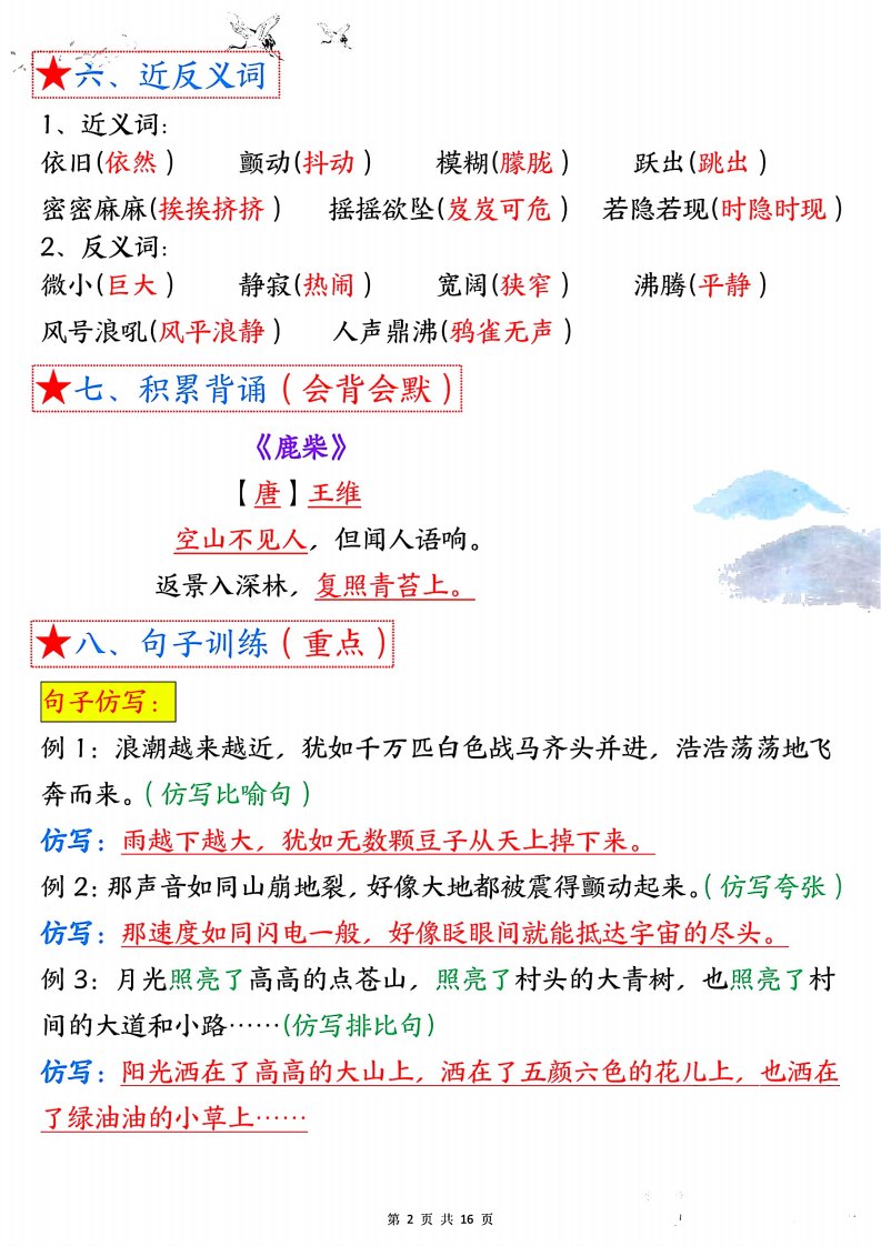 四年级语文上册1-8单元考点总结(8个必背知识点)_共32页