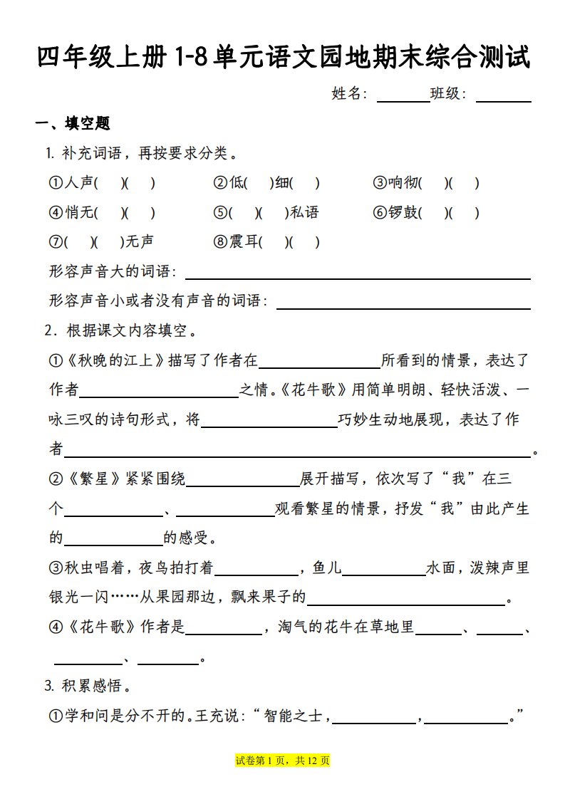 【期末综合测试-1-8单元语文园地专项训练(有答案)】四上语文_共41页
