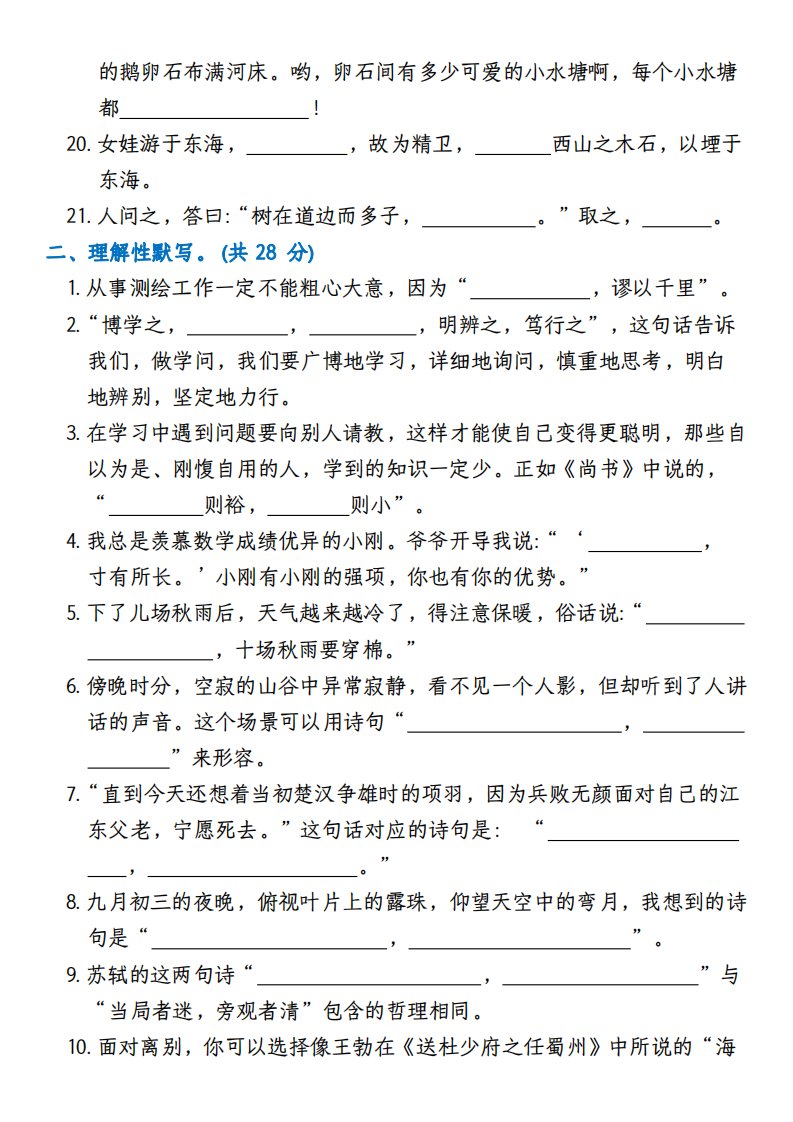 【期末复习小测(积累背诵与课文理解)】四上语文_共8页