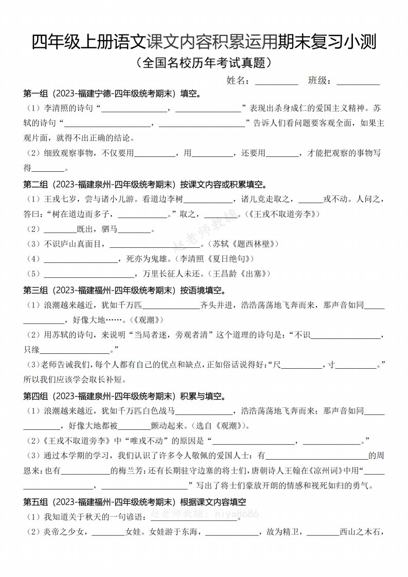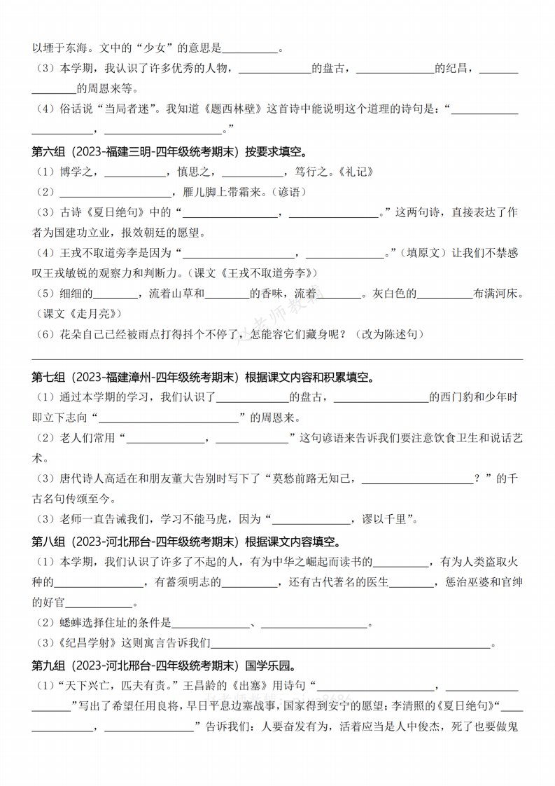 【期末复习小测课文内容积累运用(含答案)】四上语文_共10页
