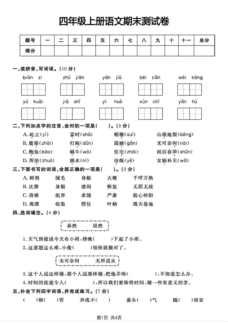 当前位置: 首页小学资源小学四年级正文 四年级上册语文期末测试卷(1)_共8页 小学四年级 1 周前 0 0 5 以上为部分内容预览,如需源文档请登录您的会员账号进行下载! 声明:本站所有文章,如无特殊说明或标注,均为本站原创发布。任何个人或组织,在未征得本站同意时,禁止复制、盗用、采集、发布本站内容到任何网站、书籍等各类媒体平台。如若本站内容侵犯了原著者的合法权益,可联系我们进行处理。 尚学资源永久会员 打赏 收藏 海报 链接