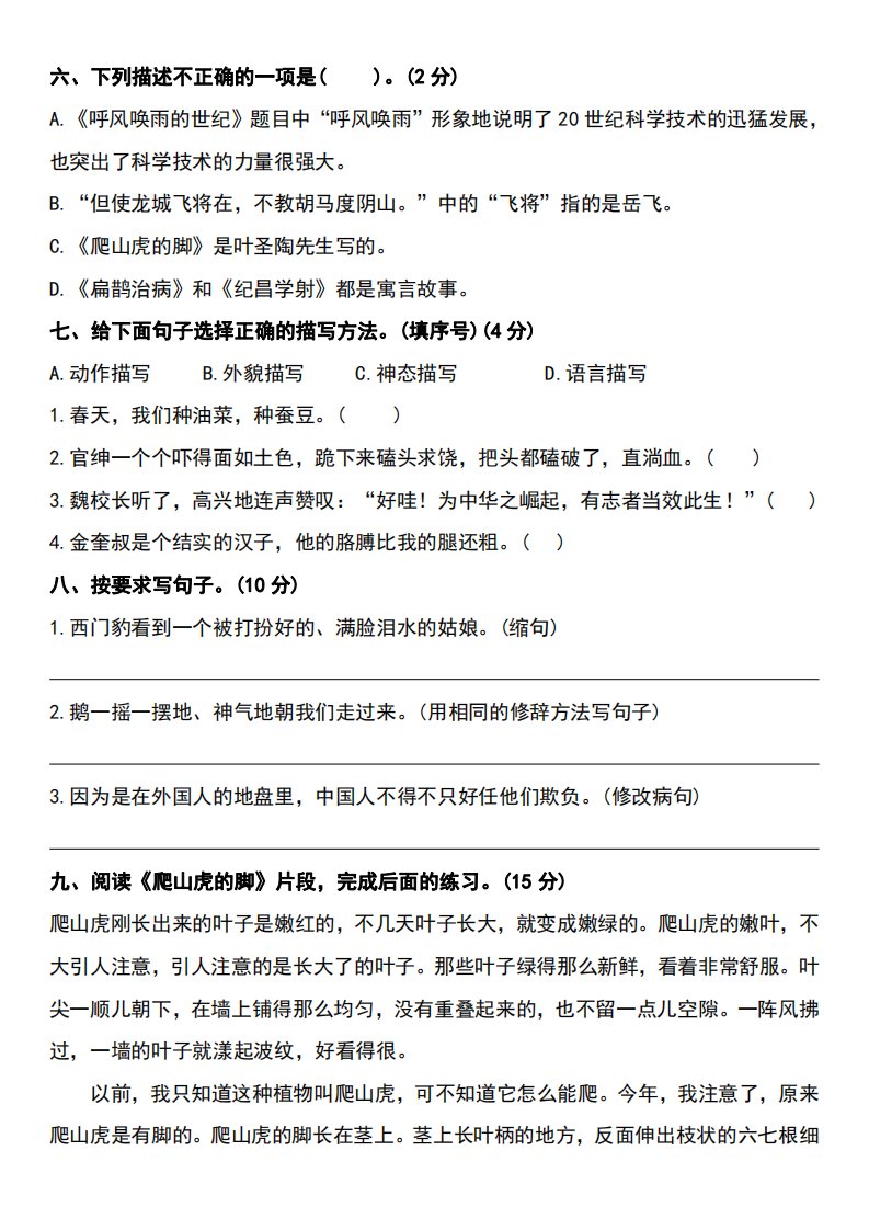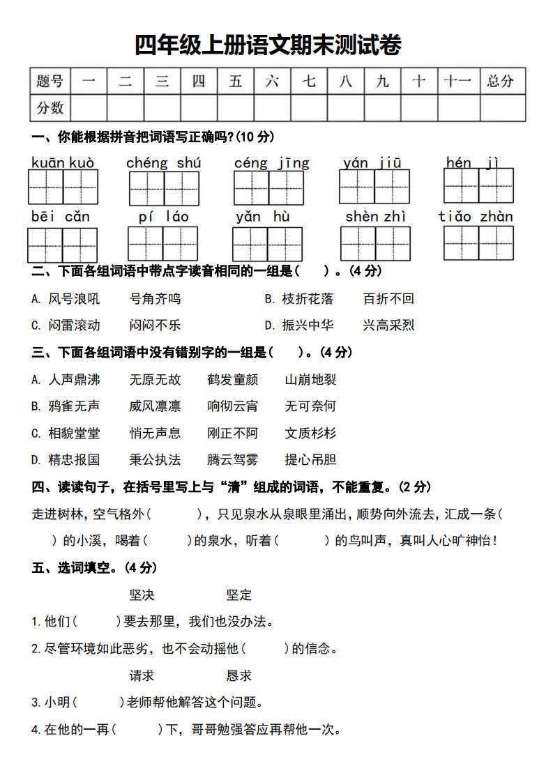 当前位置: 首页小学资源小学四年级正文 四年级上册语文期末测试卷_共8页 小学四年级 1 周前 0 0 5 以上为部分内容预览,如需源文档请登录您的会员账号进行下载! 声明:本站所有文章,如无特殊说明或标注,均为本站原创发布。任何个人或组织,在未征得本站同意时,禁止复制、盗用、采集、发布本站内容到任何网站、书籍等各类媒体平台。如若本站内容侵犯了原著者的合法权益,可联系我们进行处理。 尚学资源永久会员 打赏 收藏 海报 链接