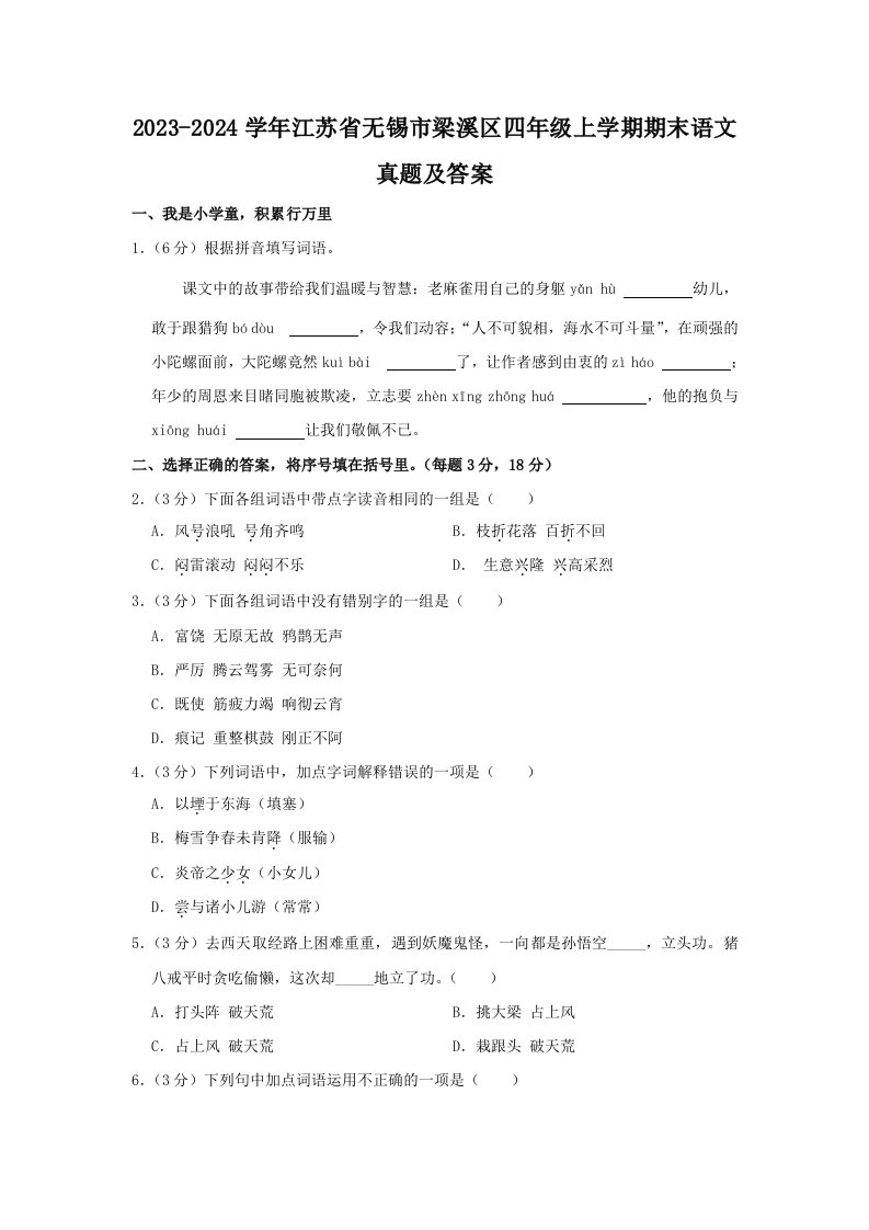 当前位置: 首页小学资源小学四年级正文 2023-2024学年江苏省无锡市梁溪区四年级上学期期末语文真题及答案(Word版)_共8页 小学四年级 1 周前 0 0 5 以上为部分内容预览,如需源文档请登录您的会员账号进行下载! 声明:本站所有文章,如无特殊说明或标注,均为本站原创发布。任何个人或组织,在未征得本站同意时,禁止复制、盗用、采集、发布本站内容到任何网站、书籍等各类媒体平台。如若本站内容侵犯了原著者的合法权益,可联系我们进行处理。 尚学资源永久会员 打赏 收藏 海报 链接