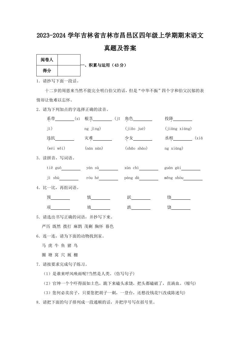 当前位置: 首页小学资源小学四年级正文 2023-2024学年吉林省吉林市昌邑区四年级上学期期末语文真题及答案(Word版)_共9页 小学四年级 1 周前 0 0 5 以上为部分内容预览,如需源文档请登录您的会员账号进行下载! 声明:本站所有文章,如无特殊说明或标注,均为本站原创发布。任何个人或组织,在未征得本站同意时,禁止复制、盗用、采集、发布本站内容到任何网站、书籍等各类媒体平台。如若本站内容侵犯了原著者的合法权益,可联系我们进行处理。 尚学资源永久会员 打赏 收藏 海报 链接