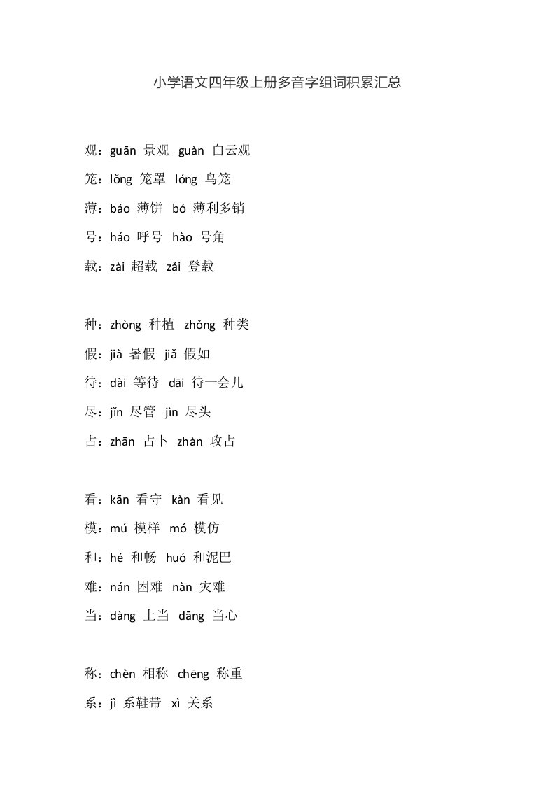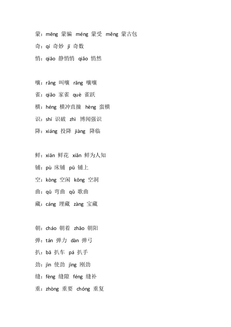 当前位置: 首页小学资源小学四年级正文 四(上)语文多音字组词积累汇总_共5页 小学四年级 1 周前 0 0 5 以上为部分内容预览,如需源文档请登录您的会员账号进行下载! 声明:本站所有文章,如无特殊说明或标注,均为本站原创发布。任何个人或组织,在未征得本站同意时,禁止复制、盗用、采集、发布本站内容到任何网站、书籍等各类媒体平台。如若本站内容侵犯了原著者的合法权益,可联系我们进行处理。 尚学资源永久会员 打赏 收藏 海报 链接