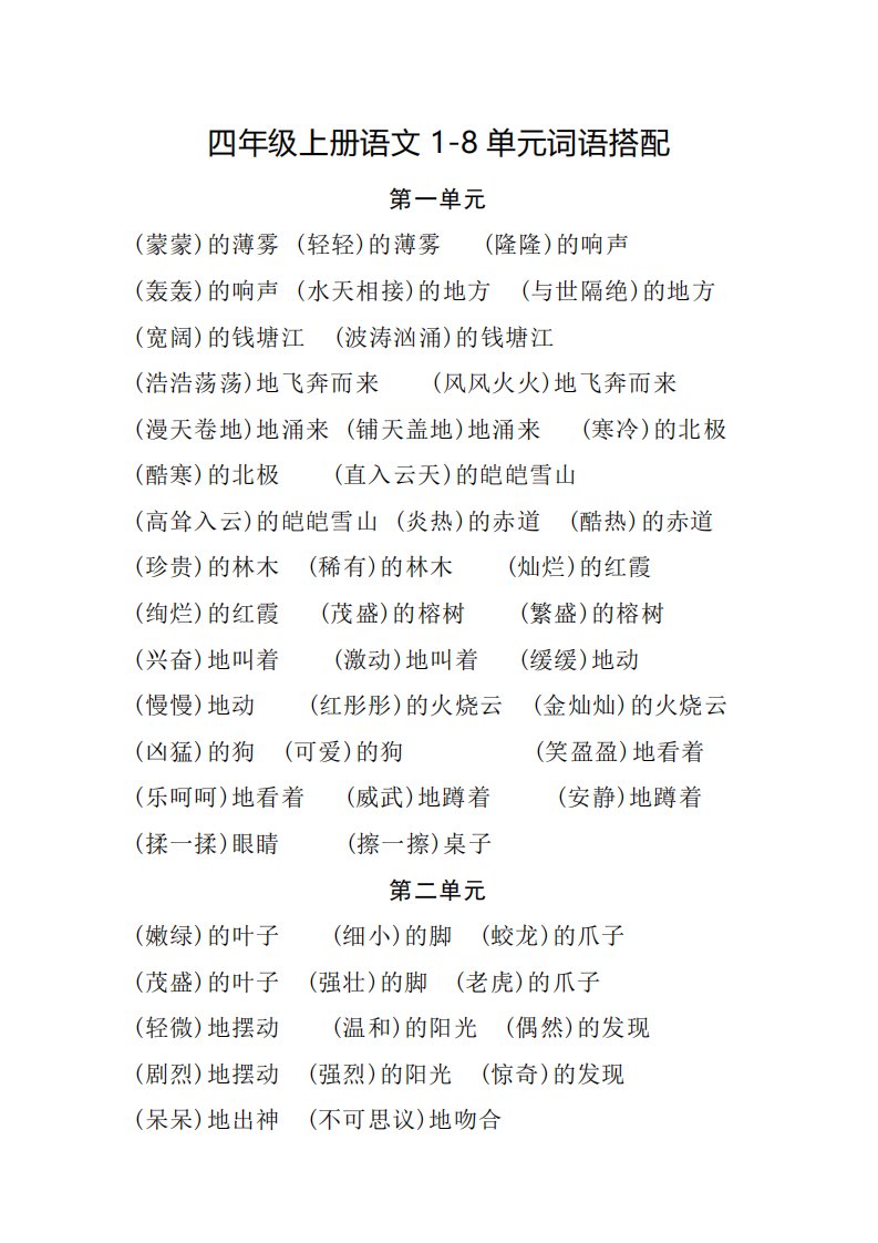 当前位置: 首页小学资源小学四年级正文 四(上)语文1-8单元词语搭配.2_共5页 小学四年级 1 周前 0 0 5 以上为部分内容预览,如需源文档请登录您的会员账号进行下载! 声明:本站所有文章,如无特殊说明或标注,均为本站原创发布。任何个人或组织,在未征得本站同意时,禁止复制、盗用、采集、发布本站内容到任何网站、书籍等各类媒体平台。如若本站内容侵犯了原著者的合法权益,可联系我们进行处理。 尚学资源永久会员 打赏 收藏 海报 链接