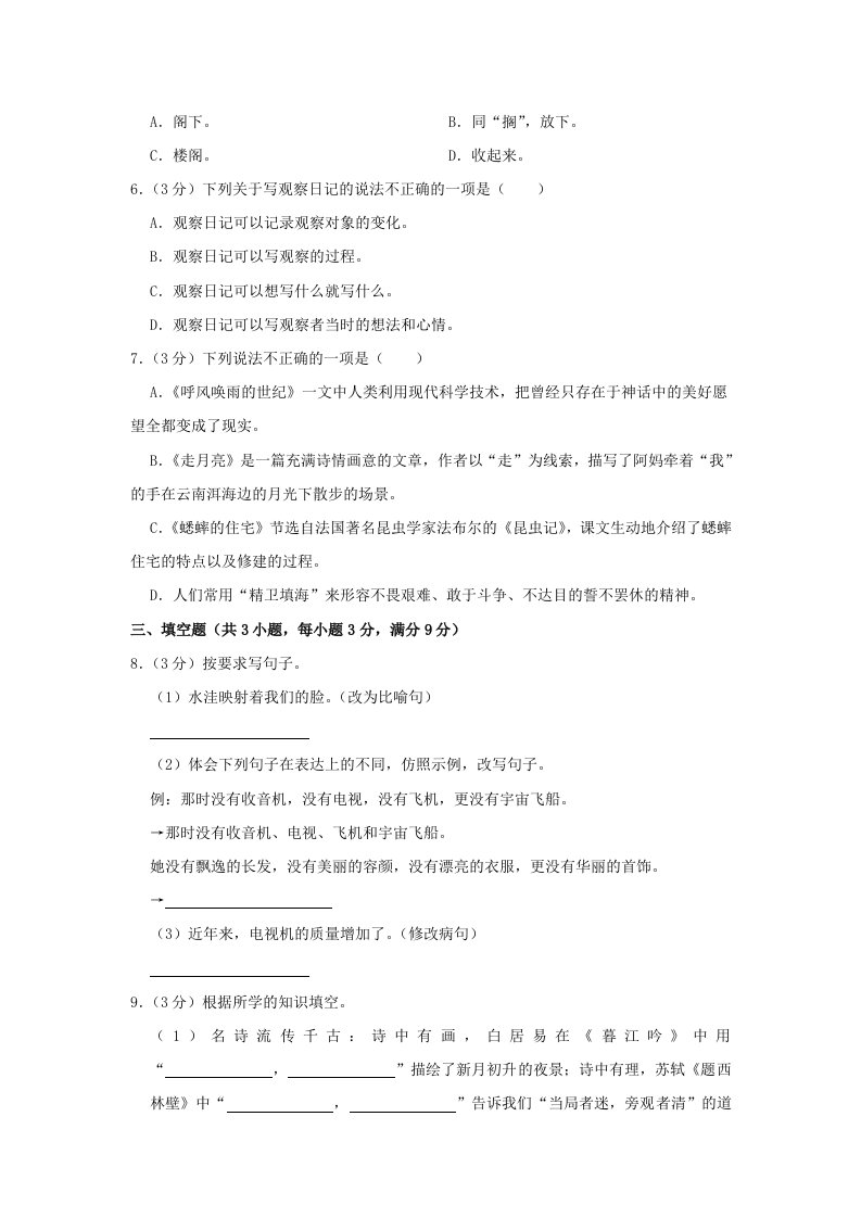 当前位置: 首页小学资源小学四年级正文 2023-2024学年陕西省咸阳市秦都区四年级上学期期中语文真题及答案(Word版)_共16页 小学四年级 1 周前 0 0 10 以上为部分内容预览,如需源文档请登录您的会员账号进行下载! 声明:本站所有文章,如无特殊说明或标注,均为本站原创发布。任何个人或组织,在未征得本站同意时,禁止复制、盗用、采集、发布本站内容到任何网站、书籍等各类媒体平台。如若本站内容侵犯了原著者的合法权益,可联系我们进行处理。 尚学资源永久会员 打赏 收藏 海报 链接
