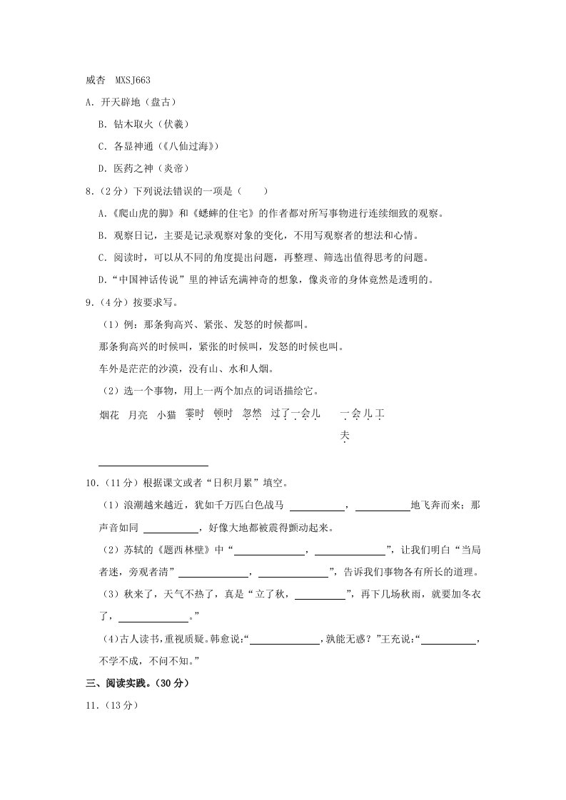 2023-2024学年浙江省温州市龙港市四年级上学期期中语文真题及答案(Word版)_共16页