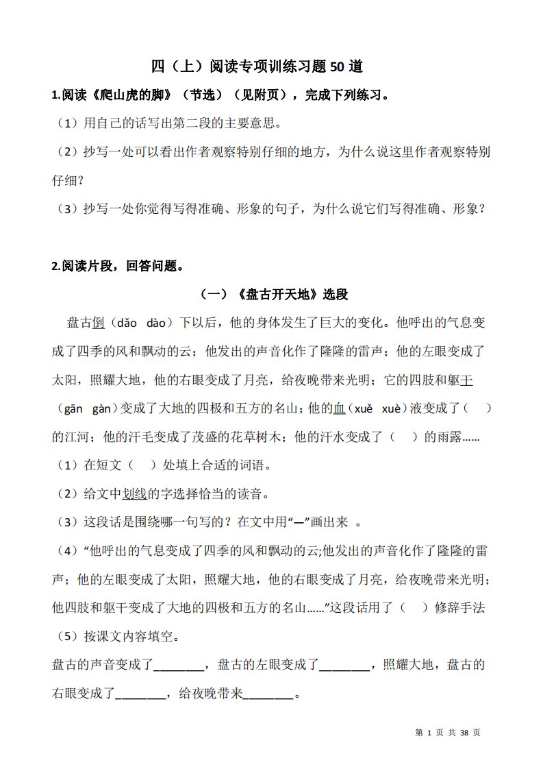 当前位置: 首页小学资源小学四年级正文 四上语文阅读专项训练习题50道_共38页 小学四年级 7 天前 0 0 15 以上为部分内容预览,如需源文档请登录您的会员账号进行下载! 声明:本站所有文章,如无特殊说明或标注,均为本站原创发布。任何个人或组织,在未征得本站同意时,禁止复制、盗用、采集、发布本站内容到任何网站、书籍等各类媒体平台。如若本站内容侵犯了原著者的合法权益,可联系我们进行处理。 尚学资源永久会员 打赏 收藏 海报 链接