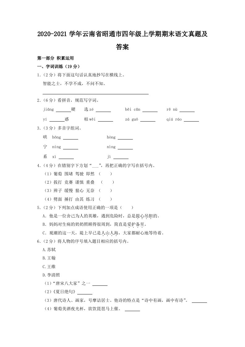 当前位置: 首页小学资源小学四年级正文 2020-2021学年云南省昭通市四年级上学期期末语文真题及答案(Word版)_共12页 小学四年级 1 周前 0 0 10 以上为部分内容预览,如需源文档请登录您的会员账号进行下载! 声明:本站所有文章,如无特殊说明或标注,均为本站原创发布。任何个人或组织,在未征得本站同意时,禁止复制、盗用、采集、发布本站内容到任何网站、书籍等各类媒体平台。如若本站内容侵犯了原著者的合法权益,可联系我们进行处理。 尚学资源永久会员 打赏 收藏 海报 链接