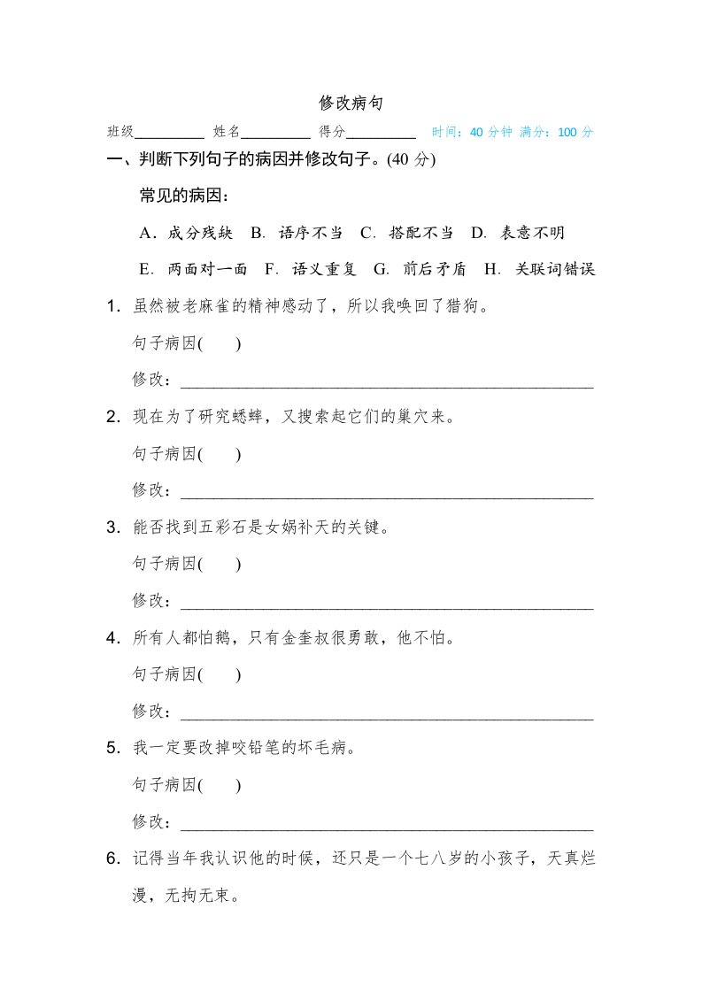 当前位置: 首页小学资源小学四年级正文 四年级语文上册修改病句_共6页 小学四年级 1 周前 0 0 5 以上为部分内容预览,如需源文档请登录您的会员账号进行下载! 声明:本站所有文章,如无特殊说明或标注,均为本站原创发布。任何个人或组织,在未征得本站同意时,禁止复制、盗用、采集、发布本站内容到任何网站、书籍等各类媒体平台。如若本站内容侵犯了原著者的合法权益,可联系我们进行处理。 尚学资源永久会员 打赏 收藏 海报 链接