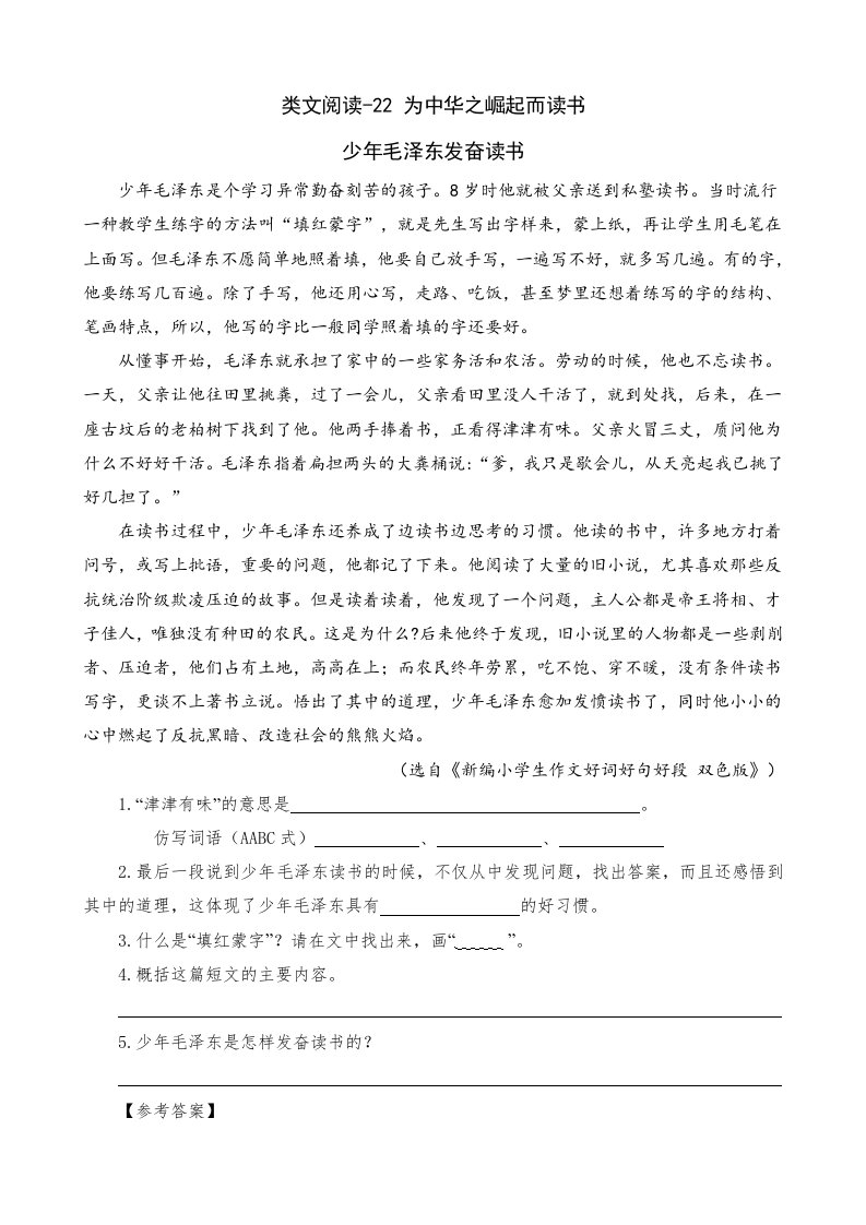 四年级语文上册类文阅读22为中华之崛起而读书_共3页