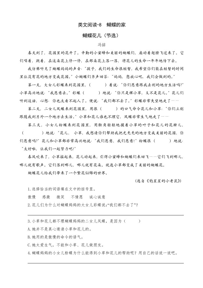 四年级语文上册类文阅读8蝴蝶的家(2)_共4页
