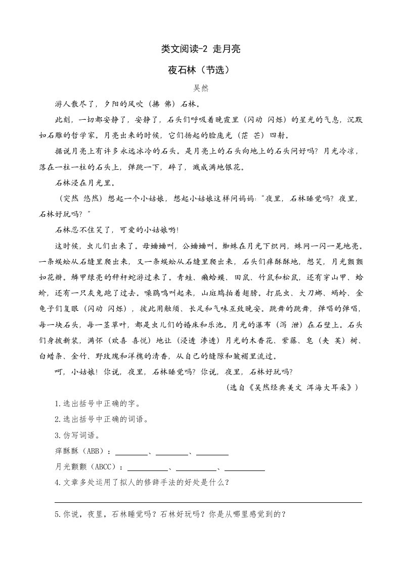 当前位置: 首页小学资源小学四年级正文 四年级语文上册类文阅读2走月亮_共3页 小学四年级 1 周前 0 0 5 以上为部分内容预览,如需源文档请登录您的会员账号进行下载! 声明:本站所有文章,如无特殊说明或标注,均为本站原创发布。任何个人或组织,在未征得本站同意时,禁止复制、盗用、采集、发布本站内容到任何网站、书籍等各类媒体平台。如若本站内容侵犯了原著者的合法权益,可联系我们进行处理。 尚学资源永久会员 打赏 收藏 海报 链接