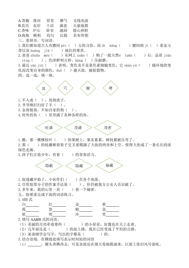 当前位置: 首页小学资源小学四年级正文 四年级语文上册词语专项_共5页 小学四年级 1 周前 0 0 5 以上为部分内容预览,如需源文档请登录您的会员账号进行下载! 声明:本站所有文章,如无特殊说明或标注,均为本站原创发布。任何个人或组织,在未征得本站同意时,禁止复制、盗用、采集、发布本站内容到任何网站、书籍等各类媒体平台。如若本站内容侵犯了原著者的合法权益,可联系我们进行处理。 尚学资源永久会员 打赏 收藏 海报 链接