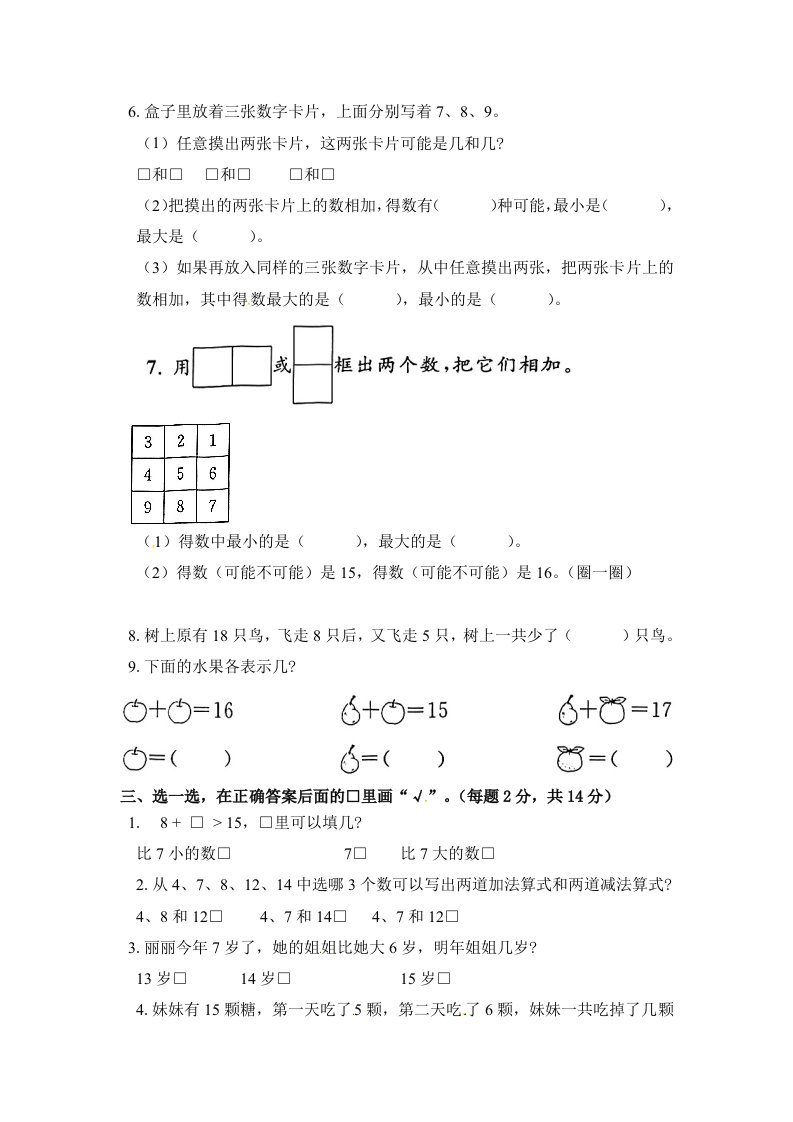 当前位置: 首页小学资源小学一年级正文 一年级数学上册《单元卷》第十单元综合测试卷(试卷版)(苏教版)_共6页 小学一年级 2 周前 0 0 5 以上为部分内容预览,如需源文档请登录您的会员账号进行下载! 声明:本站所有文章,如无特殊说明或标注,均为本站原创发布。任何个人或组织,在未征得本站同意时,禁止复制、盗用、采集、发布本站内容到任何网站、书籍等各类媒体平台。如若本站内容侵犯了原著者的合法权益,可联系我们进行处理。 尚学资源永久会员 打赏 收藏 海报 链接