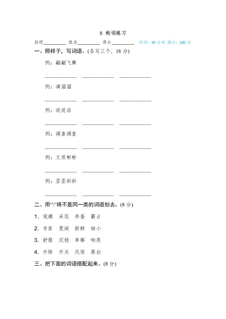 当前位置: 首页小学资源小学四年级正文 四年级语文上册8构词练习_共5页 小学四年级 7 天前 0 0 5 以上为部分内容预览,如需源文档请登录您的会员账号进行下载! 声明:本站所有文章,如无特殊说明或标注,均为本站原创发布。任何个人或组织,在未征得本站同意时,禁止复制、盗用、采集、发布本站内容到任何网站、书籍等各类媒体平台。如若本站内容侵犯了原著者的合法权益,可联系我们进行处理。 尚学资源永久会员 打赏 收藏 海报 链接