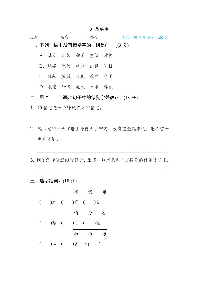 四年级语文上册3易错字_共5页