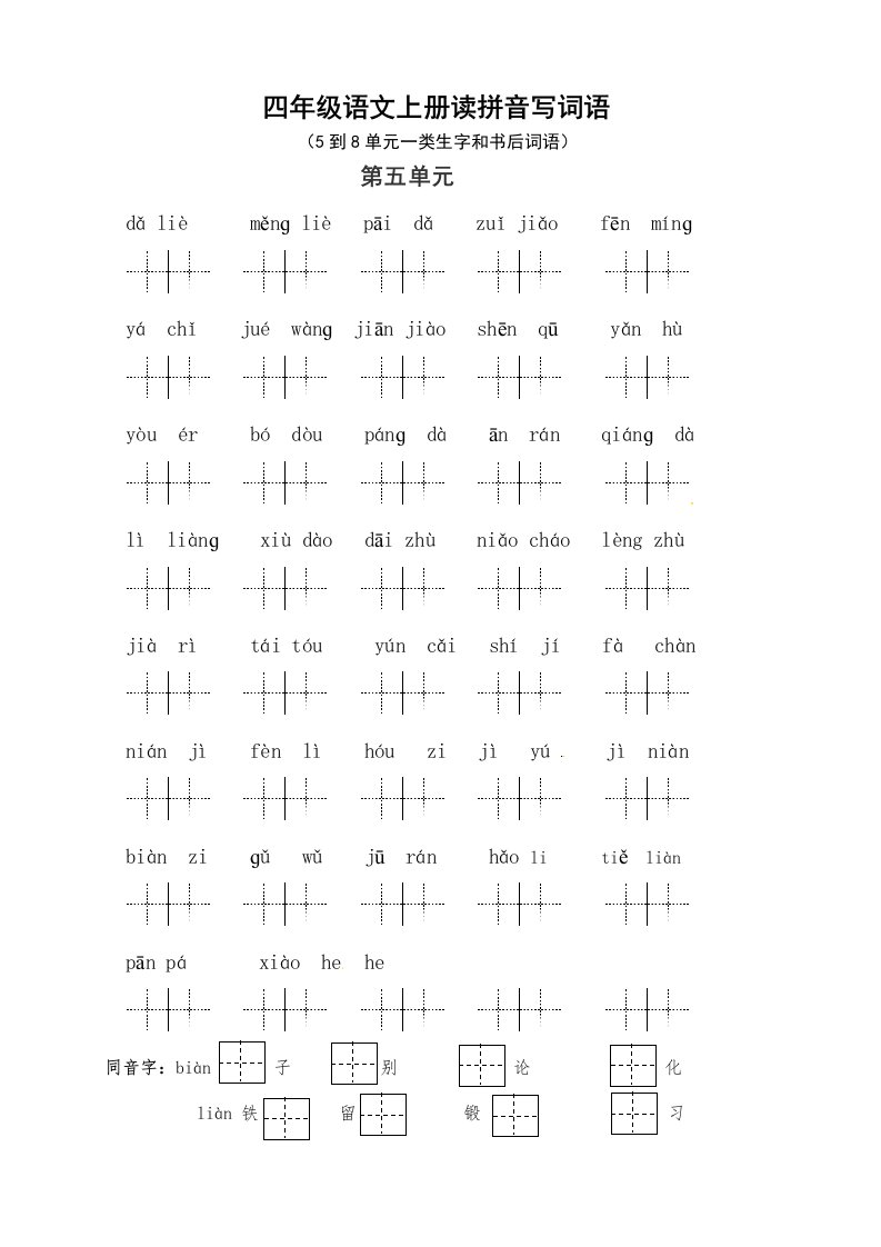 四年级语文上册2、读拼音写词语(58单元一类生字和书后词语)(6页)_共7页