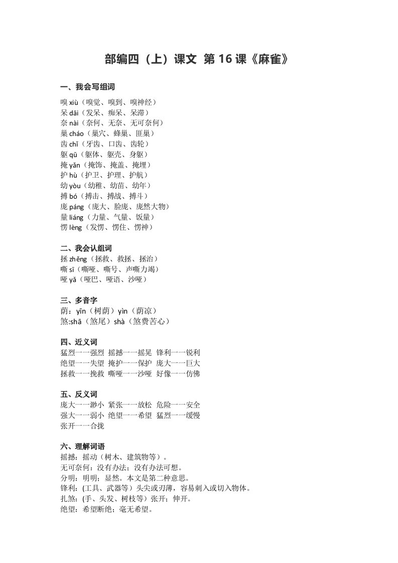 当前位置: 首页小学资源小学四年级正文 四年级语文上册16第16课《麻雀》_共4页 小学四年级 1 周前 0 0 5 以上为部分内容预览,如需源文档请登录您的会员账号进行下载! 声明:本站所有文章,如无特殊说明或标注,均为本站原创发布。任何个人或组织,在未征得本站同意时,禁止复制、盗用、采集、发布本站内容到任何网站、书籍等各类媒体平台。如若本站内容侵犯了原著者的合法权益,可联系我们进行处理。 尚学资源永久会员 打赏 收藏 海报 链接