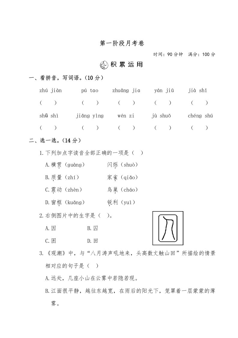 当前位置: 首页小学资源小学四年级正文 四年级语文上册第一阶段月考卷(有答案)_共8页 小学四年级 1 周前 0 0 5 以上为部分内容预览,如需源文档请登录您的会员账号进行下载! 声明:本站所有文章,如无特殊说明或标注,均为本站原创发布。任何个人或组织,在未征得本站同意时,禁止复制、盗用、采集、发布本站内容到任何网站、书籍等各类媒体平台。如若本站内容侵犯了原著者的合法权益,可联系我们进行处理。 尚学资源永久会员 打赏 收藏 海报 链接
