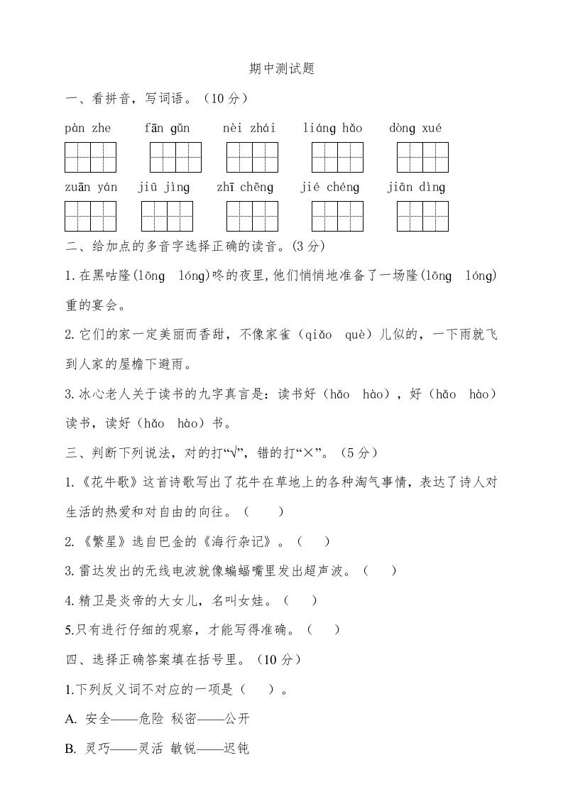 当前位置: 首页小学资源小学四年级正文 四年级语文上册期中测试(17)_共14页 小学四年级 1 周前 0 0 10 以上为部分内容预览,如需源文档请登录您的会员账号进行下载! 声明:本站所有文章,如无特殊说明或标注,均为本站原创发布。任何个人或组织,在未征得本站同意时,禁止复制、盗用、采集、发布本站内容到任何网站、书籍等各类媒体平台。如若本站内容侵犯了原著者的合法权益,可联系我们进行处理。 尚学资源永久会员 打赏 收藏 海报 链接