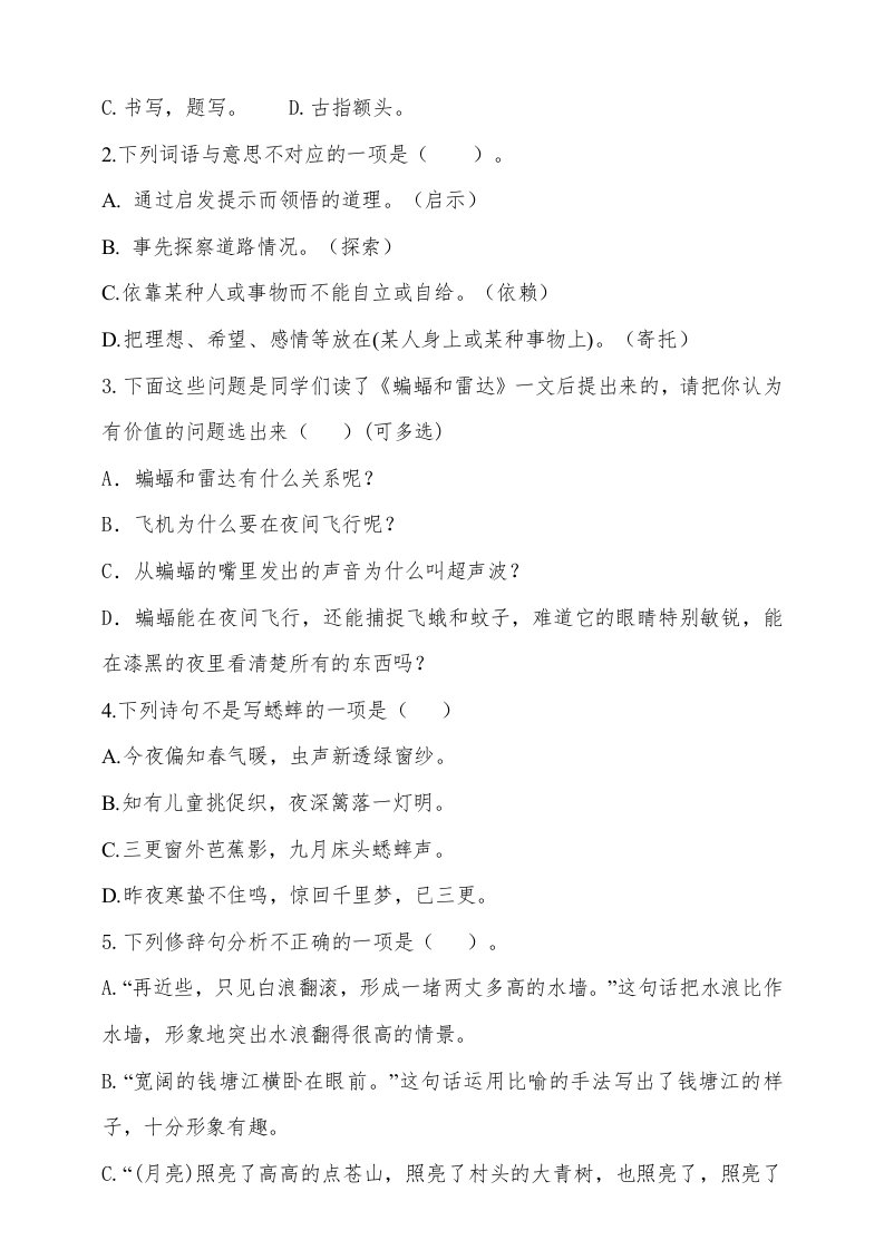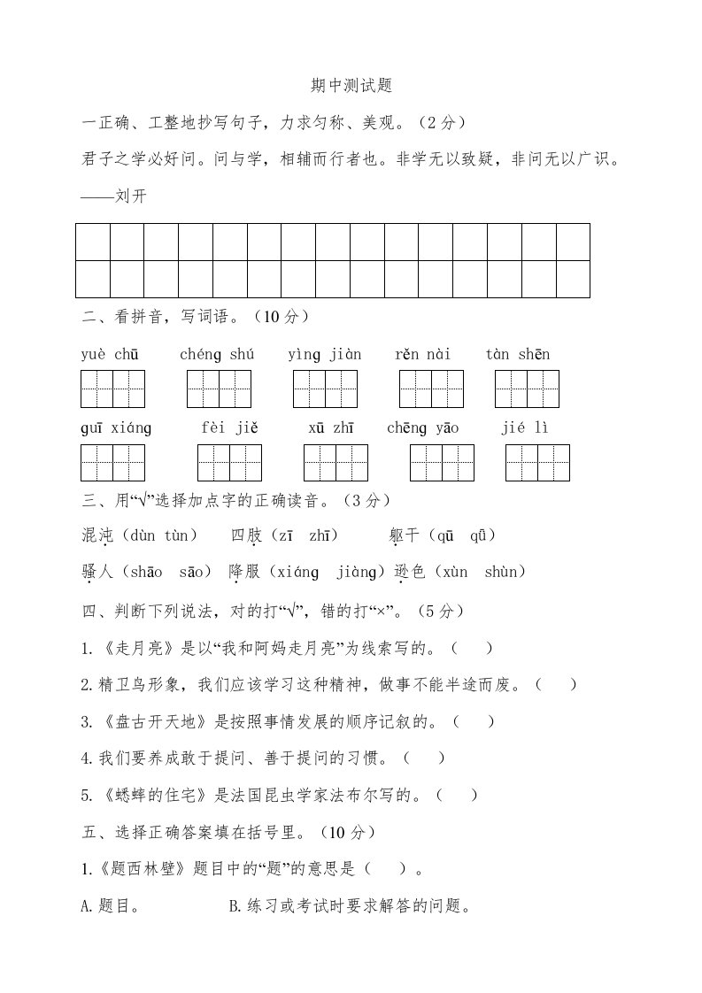 当前位置: 首页小学资源小学四年级正文 四年级语文上册期中测试(14)_共13页 小学四年级 7 天前 0 0 10 以上为部分内容预览,如需源文档请登录您的会员账号进行下载! 声明:本站所有文章,如无特殊说明或标注,均为本站原创发布。任何个人或组织,在未征得本站同意时,禁止复制、盗用、采集、发布本站内容到任何网站、书籍等各类媒体平台。如若本站内容侵犯了原著者的合法权益,可联系我们进行处理。 尚学资源永久会员 打赏 收藏 海报 链接