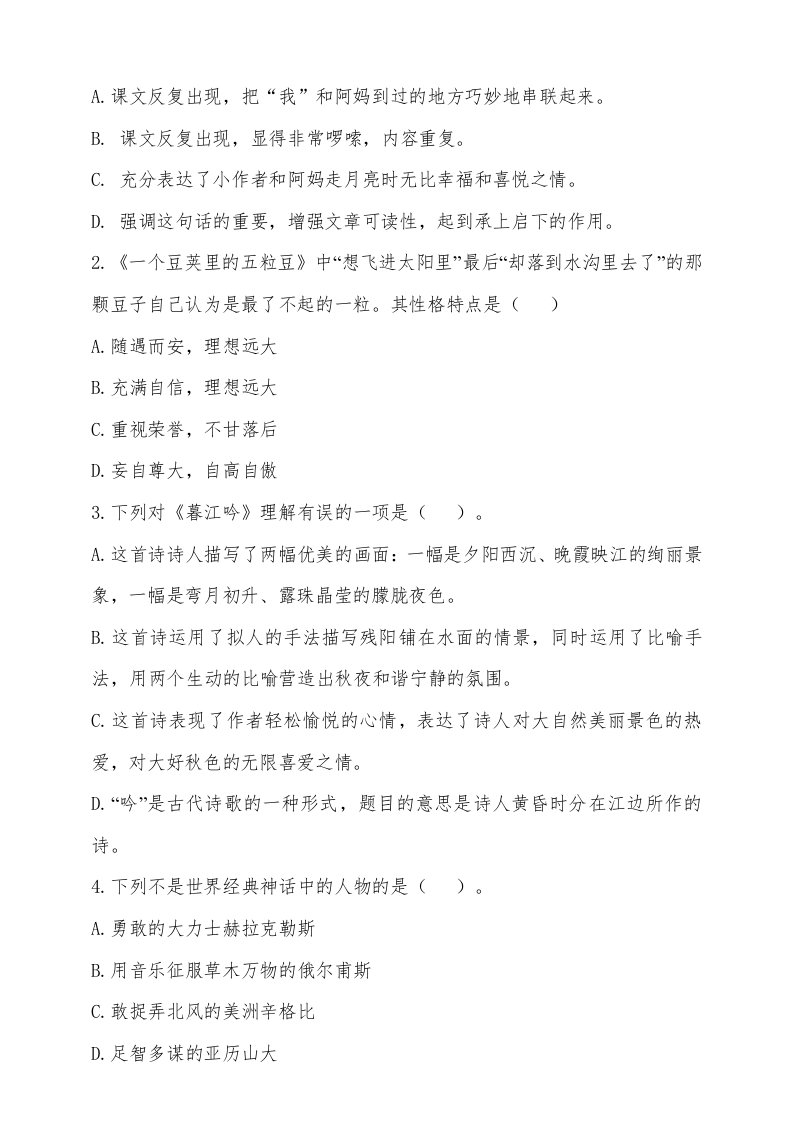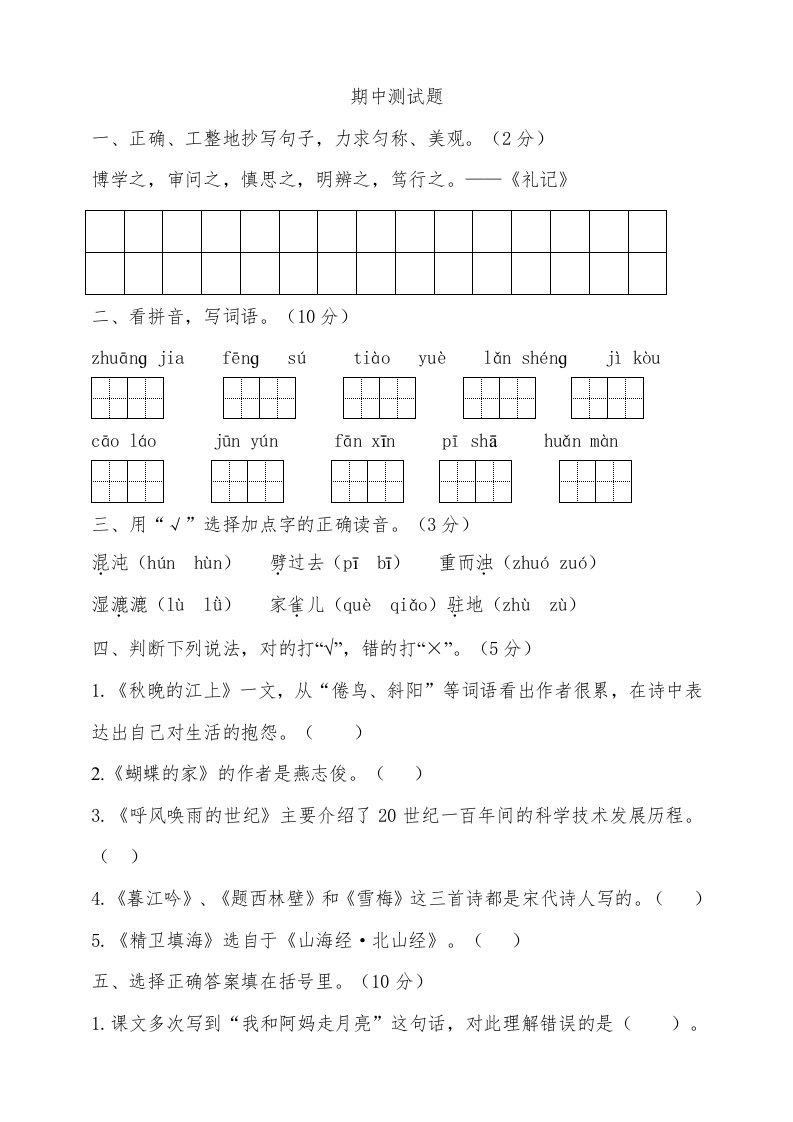 当前位置: 首页小学资源小学四年级正文 四年级语文上册期中测试(11)_共15页 小学四年级 7 天前 0 0 10 以上为部分内容预览,如需源文档请登录您的会员账号进行下载! 声明:本站所有文章,如无特殊说明或标注,均为本站原创发布。任何个人或组织,在未征得本站同意时,禁止复制、盗用、采集、发布本站内容到任何网站、书籍等各类媒体平台。如若本站内容侵犯了原著者的合法权益,可联系我们进行处理。 尚学资源永久会员 打赏 收藏 海报 链接
