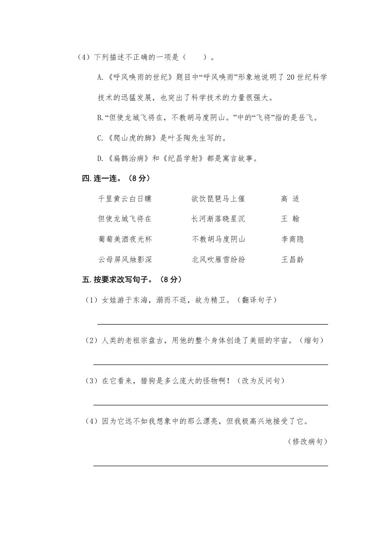 当前位置: 首页小学资源小学四年级正文 四年级语文上册期末练习(8)_共6页 小学四年级 1 周前 0 0 5 以上为部分内容预览,如需源文档请登录您的会员账号进行下载! 声明:本站所有文章,如无特殊说明或标注,均为本站原创发布。任何个人或组织,在未征得本站同意时,禁止复制、盗用、采集、发布本站内容到任何网站、书籍等各类媒体平台。如若本站内容侵犯了原著者的合法权益,可联系我们进行处理。 尚学资源永久会员 打赏 收藏 海报 链接