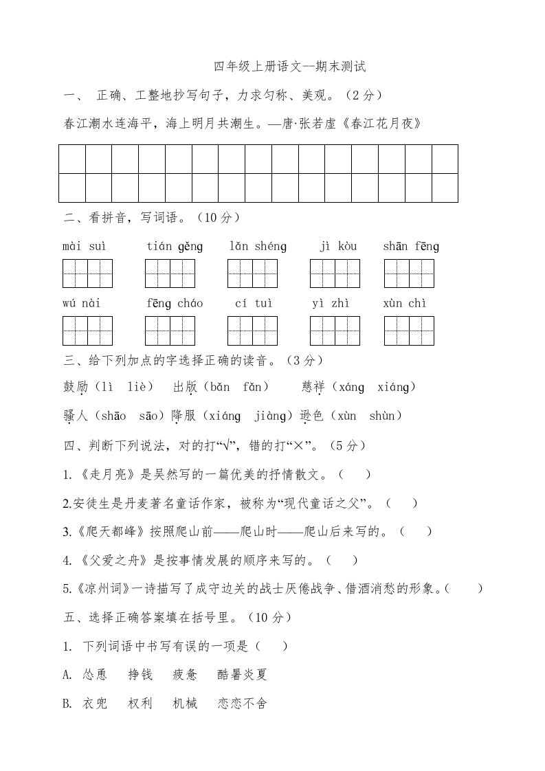 当前位置: 首页小学资源小学四年级正文 四年级语文上册(期末测试)(26)_共12页 小学四年级 1 周前 0 0 10 以上为部分内容预览,如需源文档请登录您的会员账号进行下载! 声明:本站所有文章,如无特殊说明或标注,均为本站原创发布。任何个人或组织,在未征得本站同意时,禁止复制、盗用、采集、发布本站内容到任何网站、书籍等各类媒体平台。如若本站内容侵犯了原著者的合法权益,可联系我们进行处理。 尚学资源永久会员 打赏 收藏 海报 链接