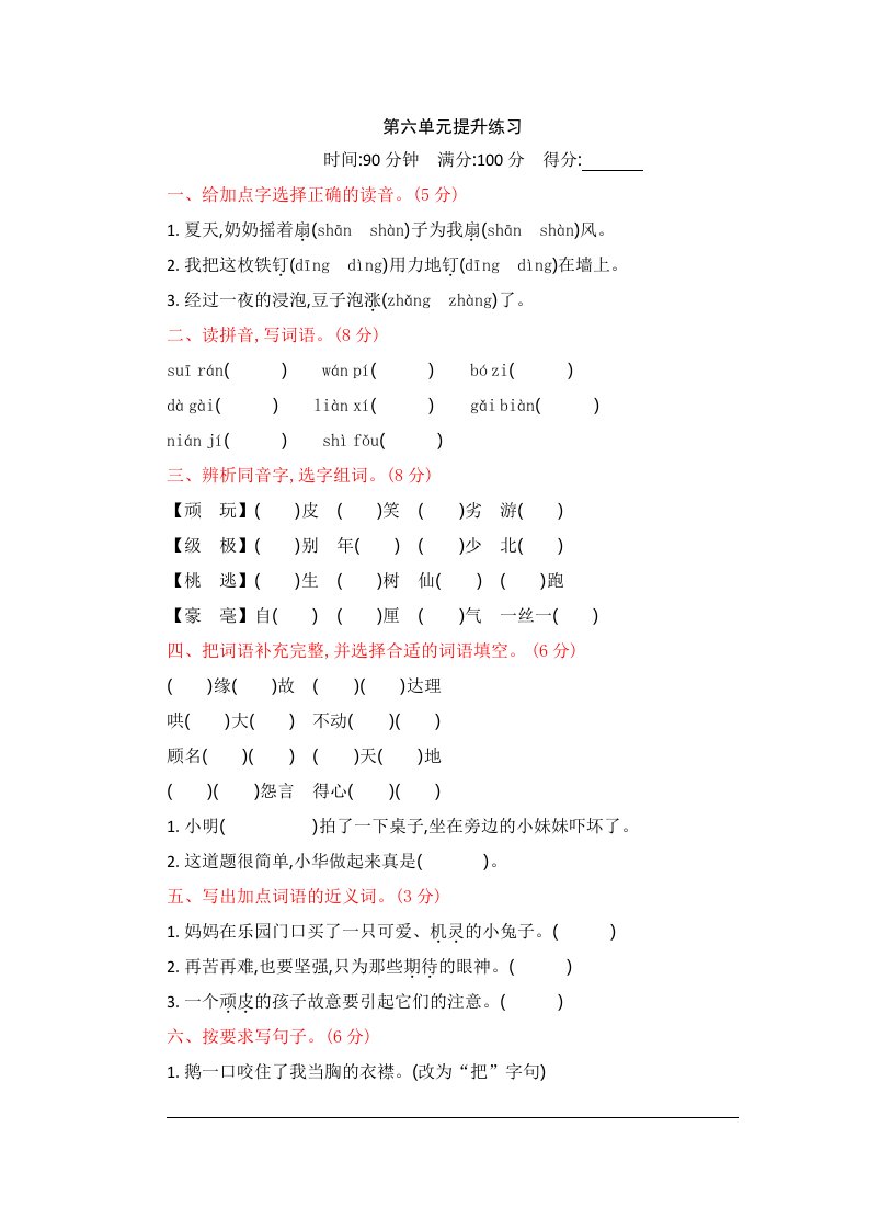 当前位置: 首页小学资源小学四年级正文 四年级语文上册第六单元提升练习_共6页 小学四年级 7 天前 0 0 5 以上为部分内容预览,如需源文档请登录您的会员账号进行下载! 声明:本站所有文章,如无特殊说明或标注,均为本站原创发布。任何个人或组织,在未征得本站同意时,禁止复制、盗用、采集、发布本站内容到任何网站、书籍等各类媒体平台。如若本站内容侵犯了原著者的合法权益,可联系我们进行处理。 尚学资源永久会员 打赏 收藏 海报 链接