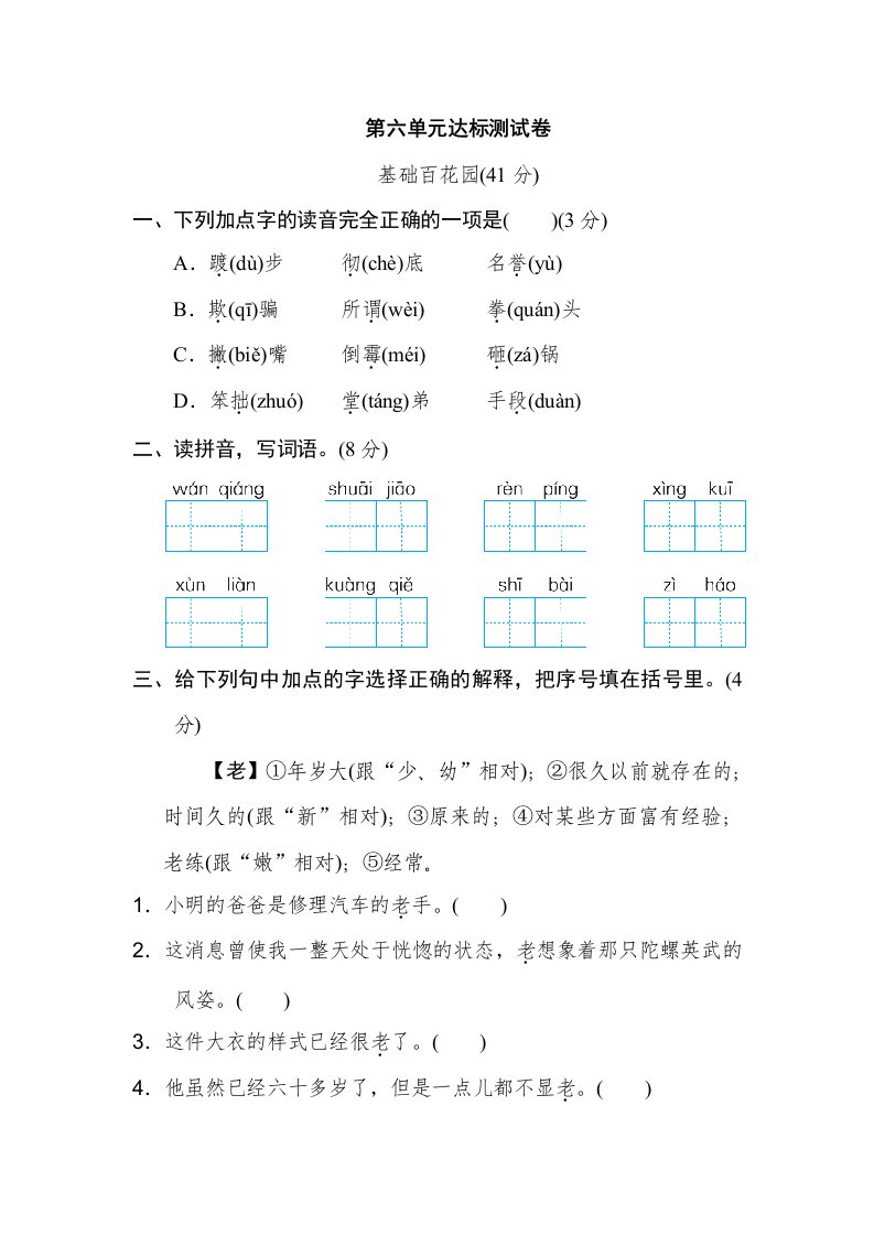 当前位置: 首页小学资源小学四年级正文 四年级语文上册第六单元达标检测卷_共8页 小学四年级 7 天前 0 0 5 以上为部分内容预览,如需源文档请登录您的会员账号进行下载! 声明:本站所有文章,如无特殊说明或标注,均为本站原创发布。任何个人或组织,在未征得本站同意时,禁止复制、盗用、采集、发布本站内容到任何网站、书籍等各类媒体平台。如若本站内容侵犯了原著者的合法权益,可联系我们进行处理。 尚学资源永久会员 打赏 收藏 海报 链接