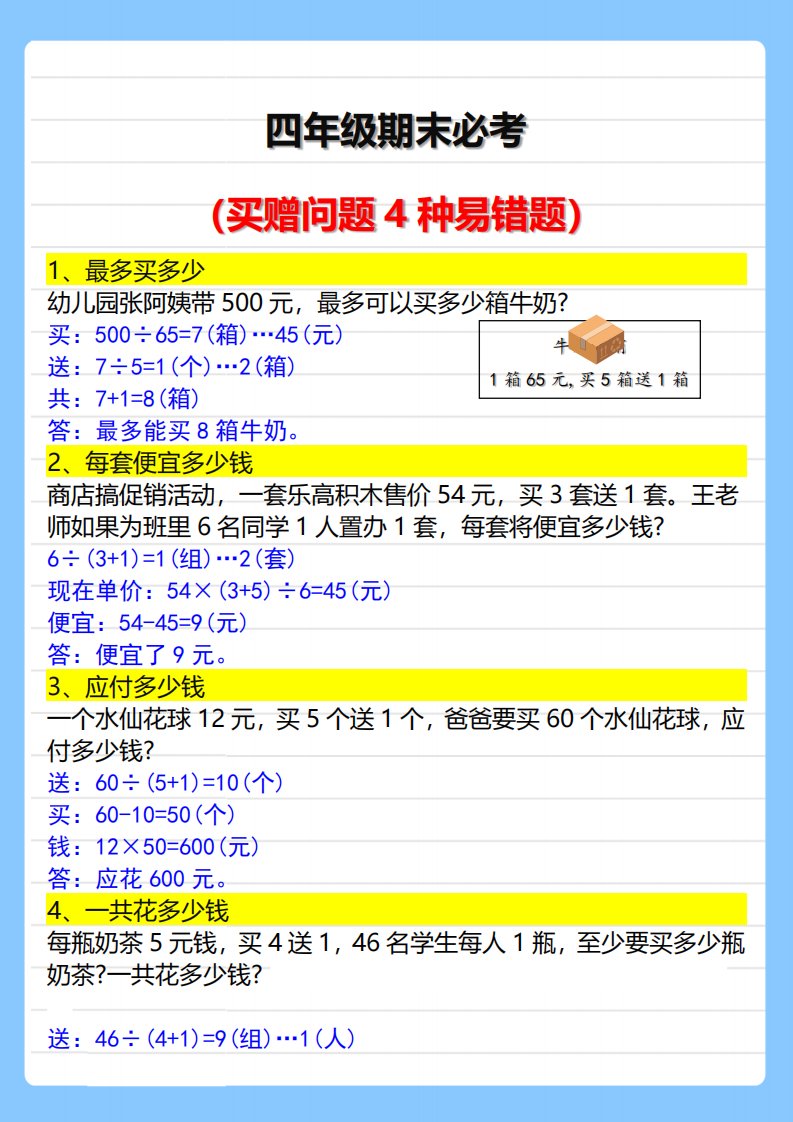 当前位置: 首页小学资源小学四年级正文 【2025秋新版】四年级期末必考买赠问题4种易错题-四上数学_共3页 小学四年级 1 周前 0 0 5 以上为部分内容预览,如需源文档请登录您的会员账号进行下载! 声明:本站所有文章,如无特殊说明或标注,均为本站原创发布。任何个人或组织,在未征得本站同意时,禁止复制、盗用、采集、发布本站内容到任何网站、书籍等各类媒体平台。如若本站内容侵犯了原著者的合法权益,可联系我们进行处理。 尚学资源永久会员 打赏 收藏 海报 链接