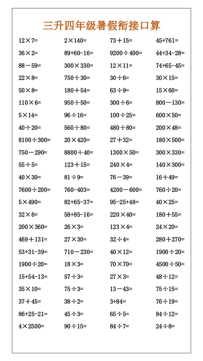 当前位置: 首页小学资源小学四年级正文 三升四年级暑假衔接口算-四上数学_共4页 小学四年级 1 周前 0 0 5 以上为部分内容预览,如需源文档请登录您的会员账号进行下载! 声明:本站所有文章,如无特殊说明或标注,均为本站原创发布。任何个人或组织,在未征得本站同意时,禁止复制、盗用、采集、发布本站内容到任何网站、书籍等各类媒体平台。如若本站内容侵犯了原著者的合法权益,可联系我们进行处理。 尚学资源永久会员 打赏 收藏 海报 链接