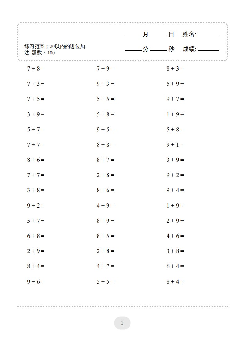 当前位置: 首页小学资源小学一年级正文 一年级数学上册(20以内的进位加法)1500题(人教版)_共30页 小学一年级 2 周前 0 0 15 以上为部分内容预览,如需源文档请登录您的会员账号进行下载! 声明:本站所有文章,如无特殊说明或标注,均为本站原创发布。任何个人或组织,在未征得本站同意时,禁止复制、盗用、采集、发布本站内容到任何网站、书籍等各类媒体平台。如若本站内容侵犯了原著者的合法权益,可联系我们进行处理。 尚学资源永久会员 打赏 收藏 海报 链接