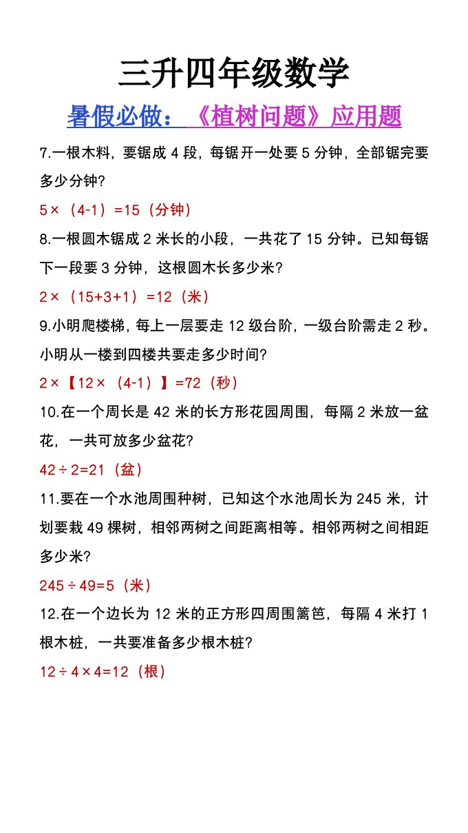 当前位置: 首页小学资源小学四年级正文 三升四年级数学暑假必做《植树问题》应用题-四上数学_共2页 小学四年级 7 天前 0 0 5 以上为部分内容预览,如需源文档请登录您的会员账号进行下载! 声明:本站所有文章,如无特殊说明或标注,均为本站原创发布。任何个人或组织,在未征得本站同意时,禁止复制、盗用、采集、发布本站内容到任何网站、书籍等各类媒体平台。如若本站内容侵犯了原著者的合法权益,可联系我们进行处理。 尚学资源永久会员 打赏 收藏 海报 链接