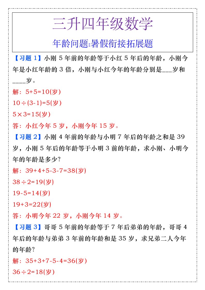 当前位置: 首页小学资源小学四年级正文 三升四年级数学年龄问题暑假衔接拓展题-四上数学_共2页 小学四年级 7 天前 0 0 5 以上为部分内容预览,如需源文档请登录您的会员账号进行下载! 声明:本站所有文章,如无特殊说明或标注,均为本站原创发布。任何个人或组织,在未征得本站同意时,禁止复制、盗用、采集、发布本站内容到任何网站、书籍等各类媒体平台。如若本站内容侵犯了原著者的合法权益,可联系我们进行处理。 尚学资源永久会员 打赏 收藏 海报 链接