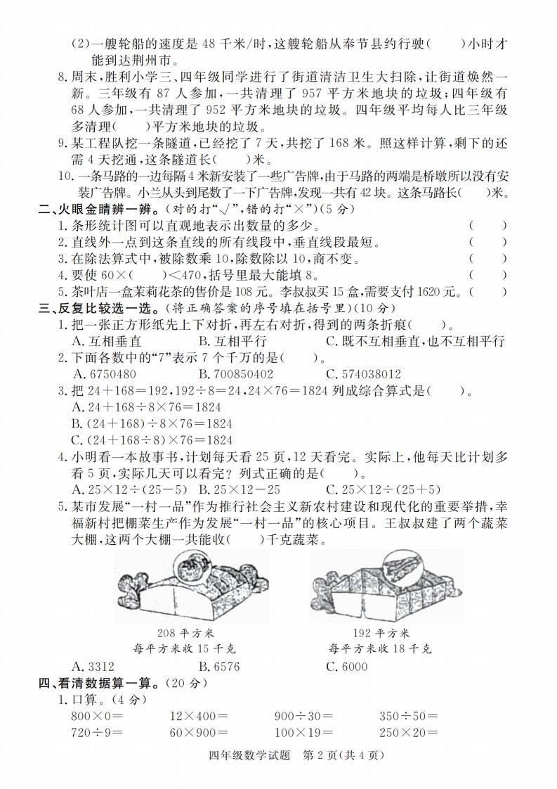 四上青岛54数学【2024-2025学年第一学期期末调研卷】_共5页