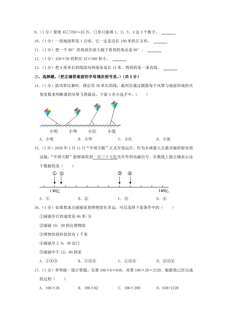 当前位置: 首页小学资源小学四年级正文 2023-2024学年湖北省孝感市汉川市四年级上学期期中数学真题及答案(Word版)_共14页 小学四年级 1 周前 0 0 10 以上为部分内容预览,如需源文档请登录您的会员账号进行下载! 声明:本站所有文章,如无特殊说明或标注,均为本站原创发布。任何个人或组织,在未征得本站同意时,禁止复制、盗用、采集、发布本站内容到任何网站、书籍等各类媒体平台。如若本站内容侵犯了原著者的合法权益,可联系我们进行处理。 尚学资源永久会员 打赏 收藏 海报 链接
