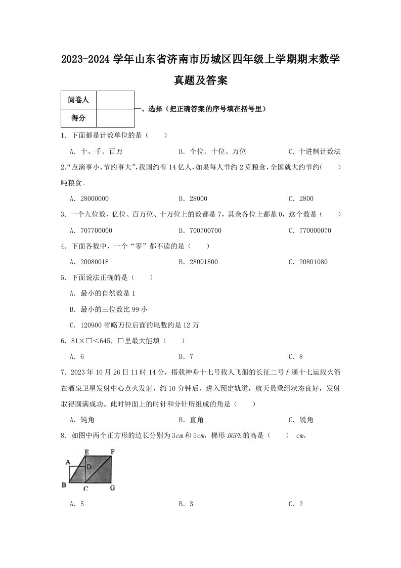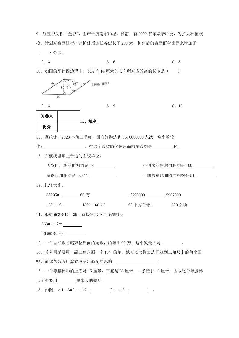当前位置: 首页小学资源小学四年级正文 2023-2024学年山东省济南市历城区四年级上学期期末数学真题及答案(Word版)_共15页 小学四年级 1 周前 0 0 10 以上为部分内容预览,如需源文档请登录您的会员账号进行下载! 声明:本站所有文章,如无特殊说明或标注,均为本站原创发布。任何个人或组织,在未征得本站同意时,禁止复制、盗用、采集、发布本站内容到任何网站、书籍等各类媒体平台。如若本站内容侵犯了原著者的合法权益,可联系我们进行处理。 尚学资源永久会员 打赏 收藏 海报 链接
