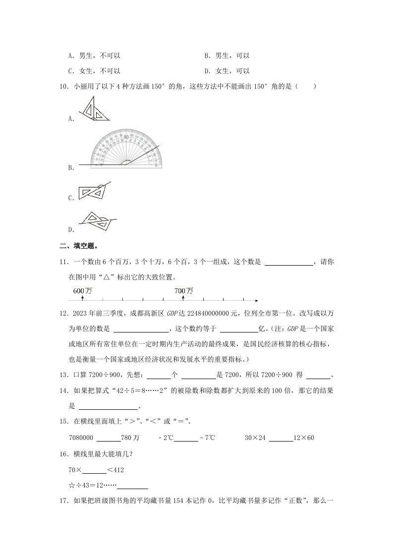 当前位置: 首页小学资源小学四年级正文 2023-2024学年四川省成都市高新区四年级上学期期末数学真题及答案(Word版)_共19页 小学四年级 1 周前 0 0 10 以上为部分内容预览,如需源文档请登录您的会员账号进行下载! 声明:本站所有文章,如无特殊说明或标注,均为本站原创发布。任何个人或组织,在未征得本站同意时,禁止复制、盗用、采集、发布本站内容到任何网站、书籍等各类媒体平台。如若本站内容侵犯了原著者的合法权益,可联系我们进行处理。 尚学资源永久会员 打赏 收藏 海报 链接
