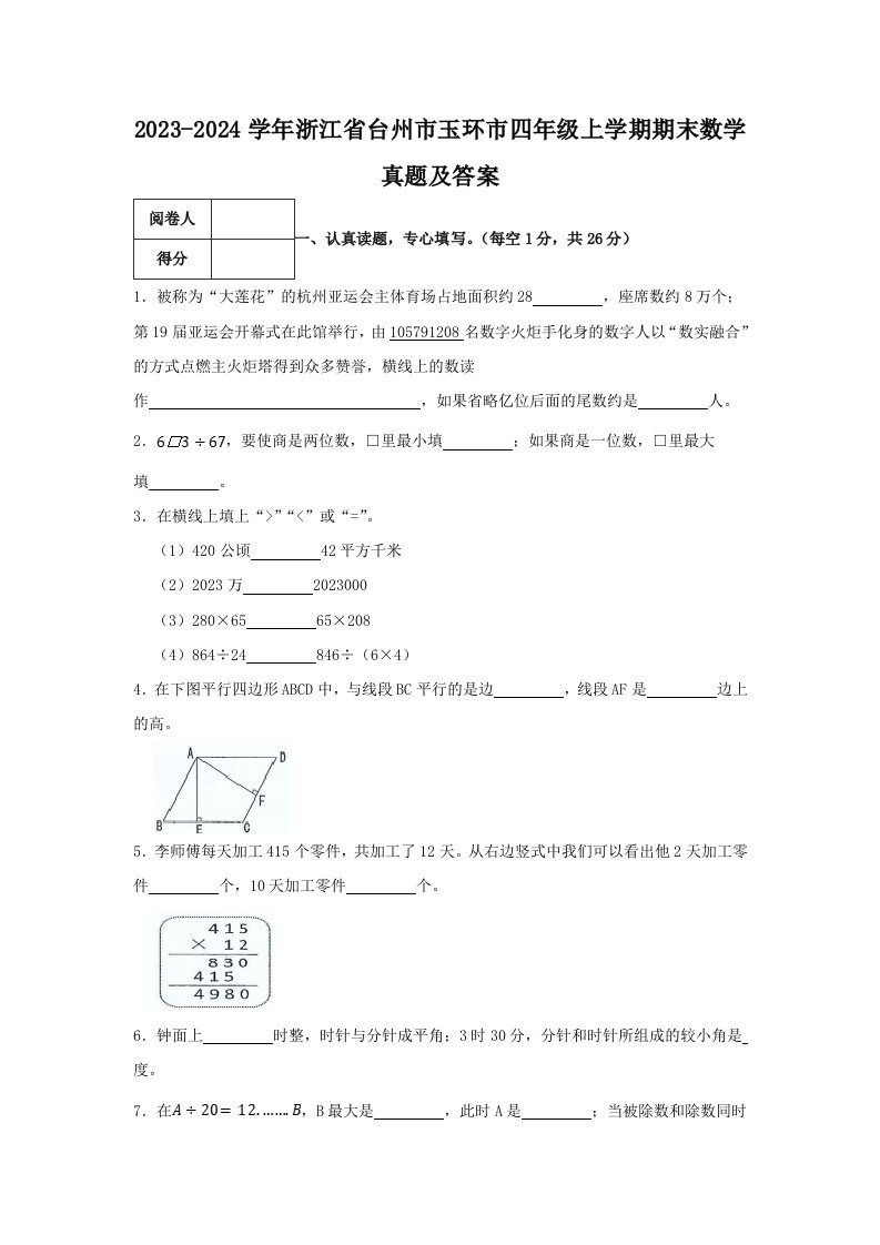 当前位置: 首页小学资源小学四年级正文 2023-2024学年浙江省台州市玉环市四年级上学期期末数学真题及答案(Word版)_共18页 小学四年级 1 周前 0 0 10 以上为部分内容预览,如需源文档请登录您的会员账号进行下载! 声明:本站所有文章,如无特殊说明或标注,均为本站原创发布。任何个人或组织,在未征得本站同意时,禁止复制、盗用、采集、发布本站内容到任何网站、书籍等各类媒体平台。如若本站内容侵犯了原著者的合法权益,可联系我们进行处理。 尚学资源永久会员 打赏 收藏 海报 链接