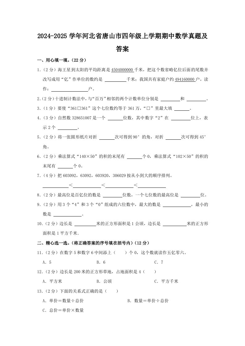 当前位置: 首页小学资源小学四年级正文 2024-2025学年河北省唐山市四年级上学期期中数学真题及答案(Word版)_共10页 小学四年级 1 周前 0 0 5 以上为部分内容预览,如需源文档请登录您的会员账号进行下载! 声明:本站所有文章,如无特殊说明或标注,均为本站原创发布。任何个人或组织,在未征得本站同意时,禁止复制、盗用、采集、发布本站内容到任何网站、书籍等各类媒体平台。如若本站内容侵犯了原著者的合法权益,可联系我们进行处理。 尚学资源永久会员 打赏 收藏 海报 链接